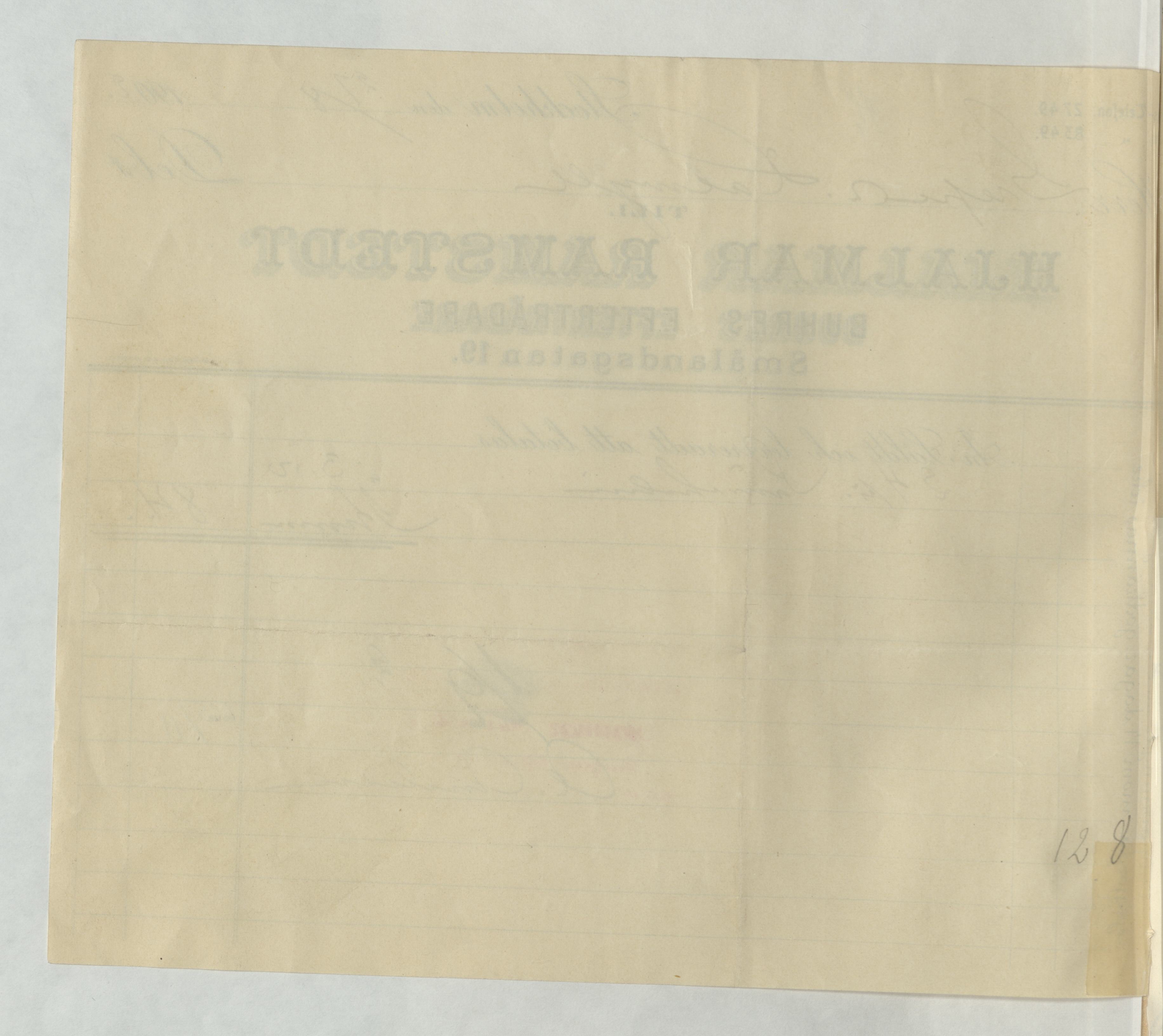 Kvitto från Hjalmar Ramstedt, lädervaror, 1902