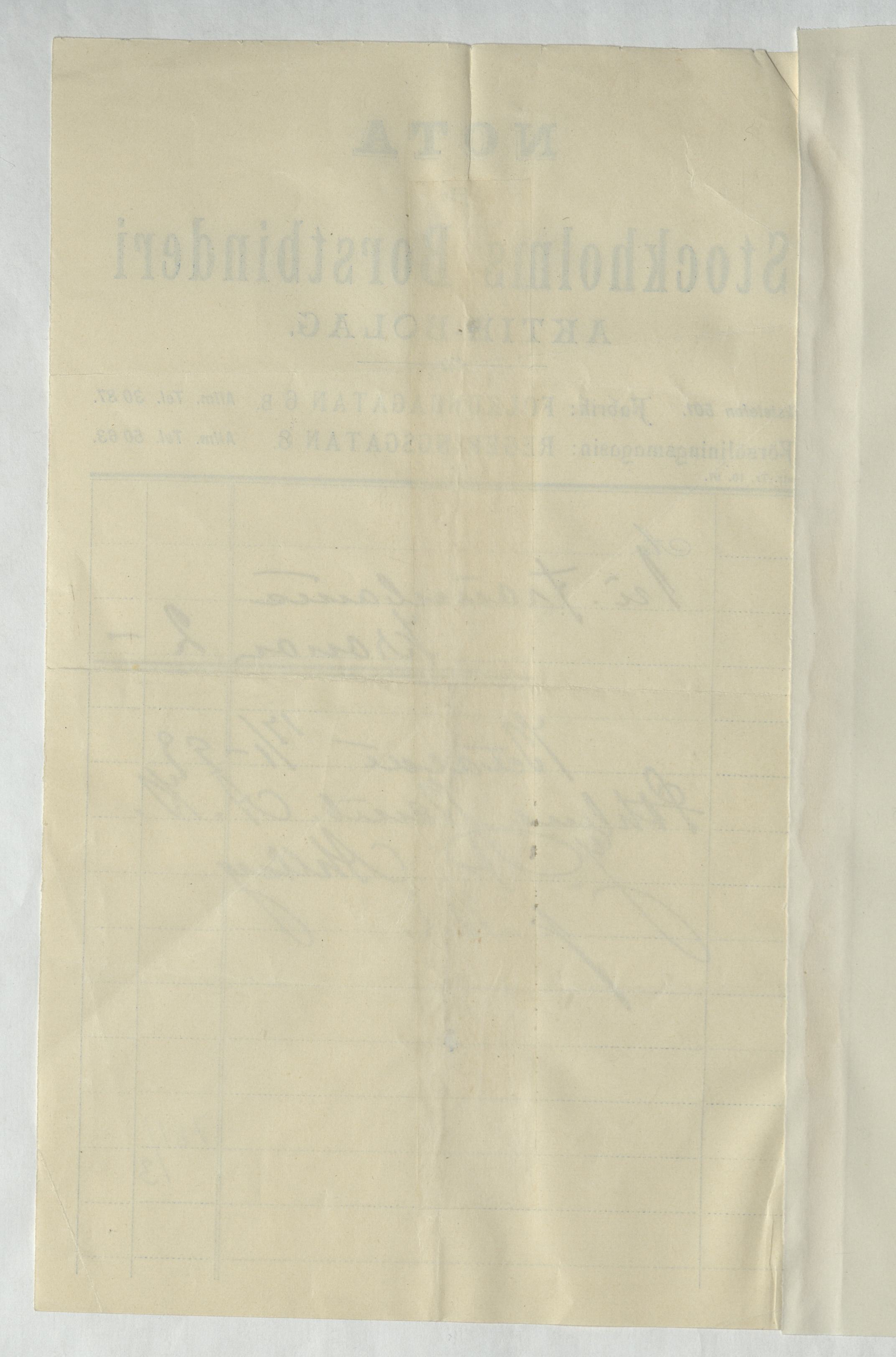 Kvitto från Stockholms Borsbinderi Aktiebolag