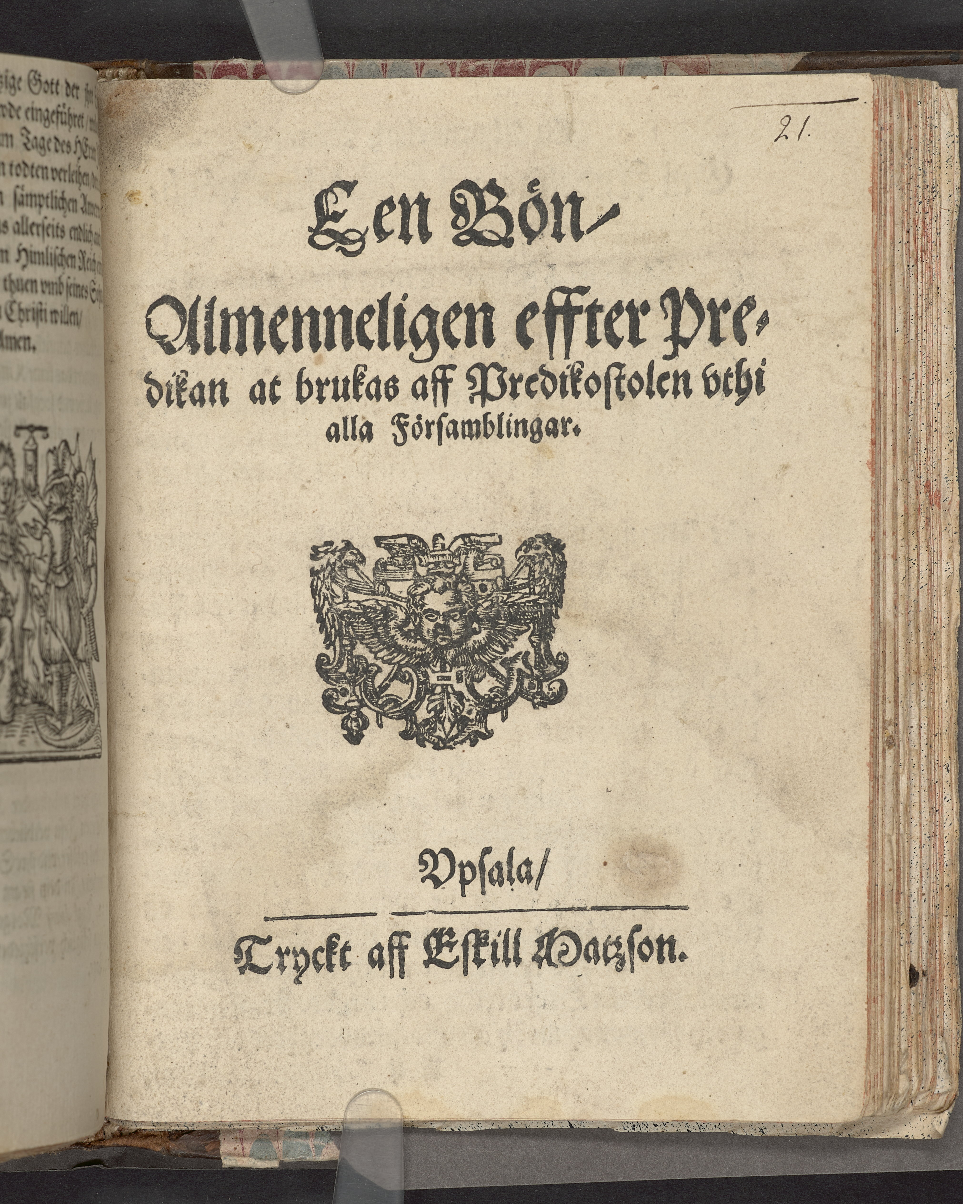 Een bön, almeneligen effter predikan at brukas aff predikostolen uthi alla församblingar. Uppsala, tryckt aff Eskill Matzson.