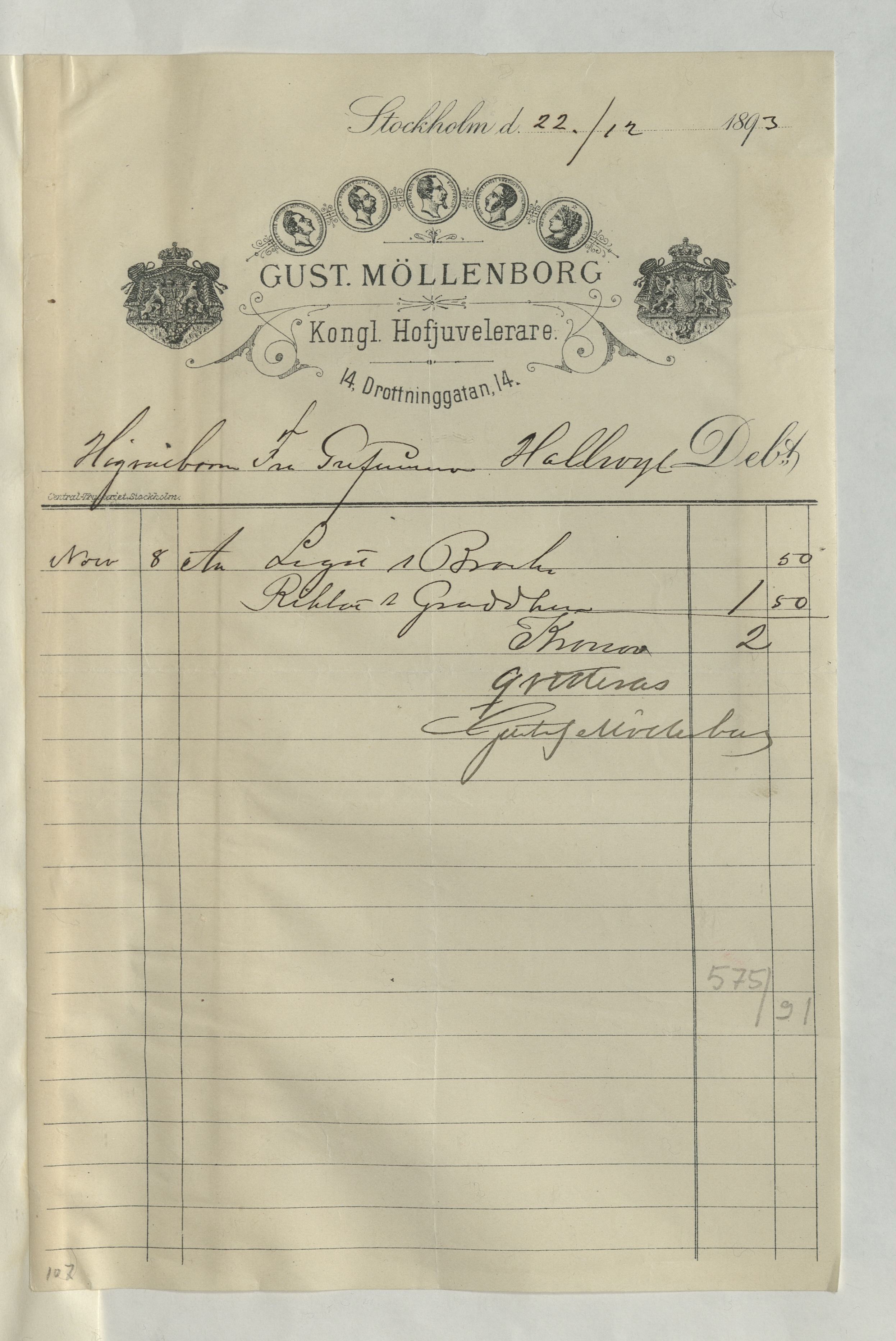 Kvitto från Gustaf Möllenborg, Juvelerare