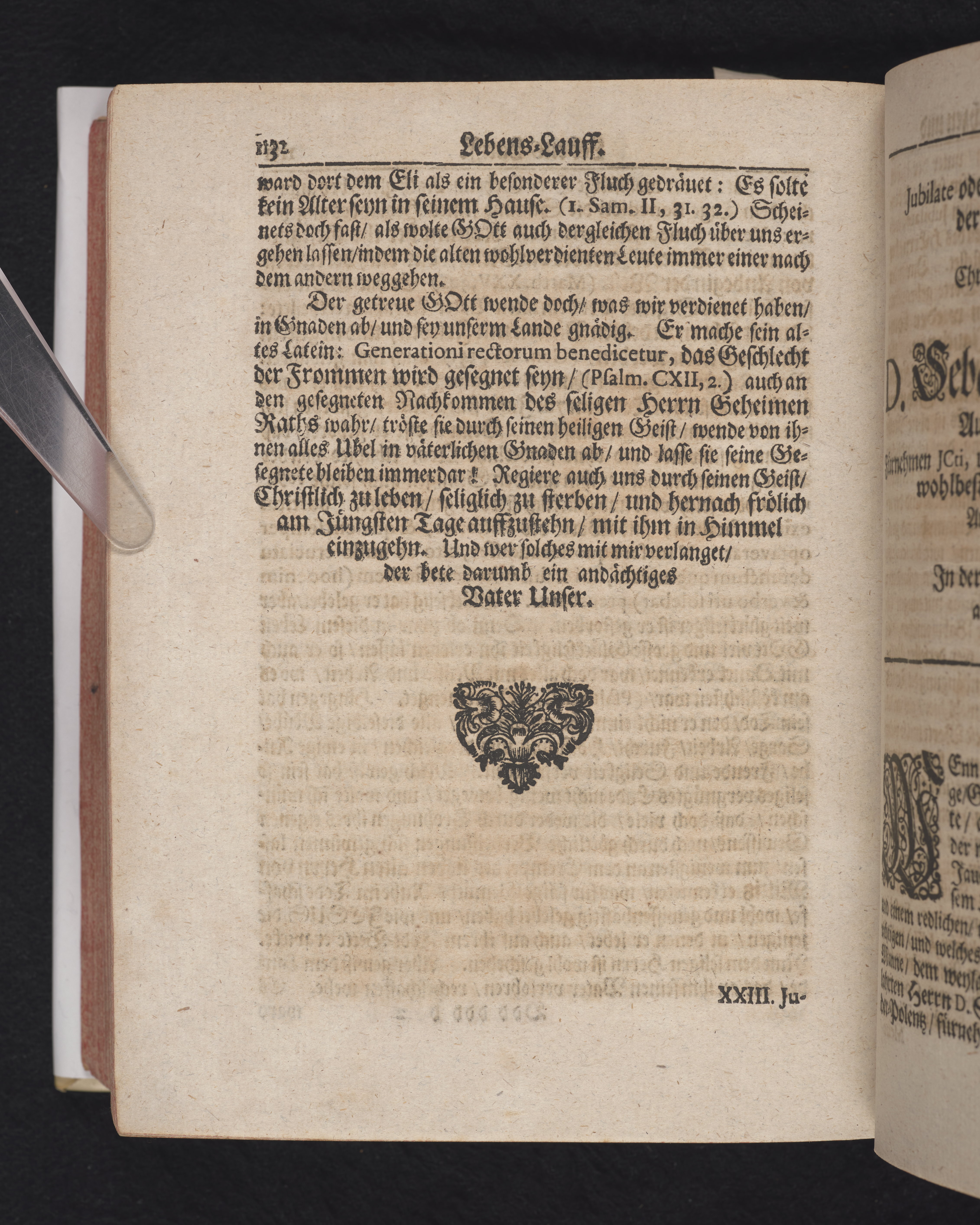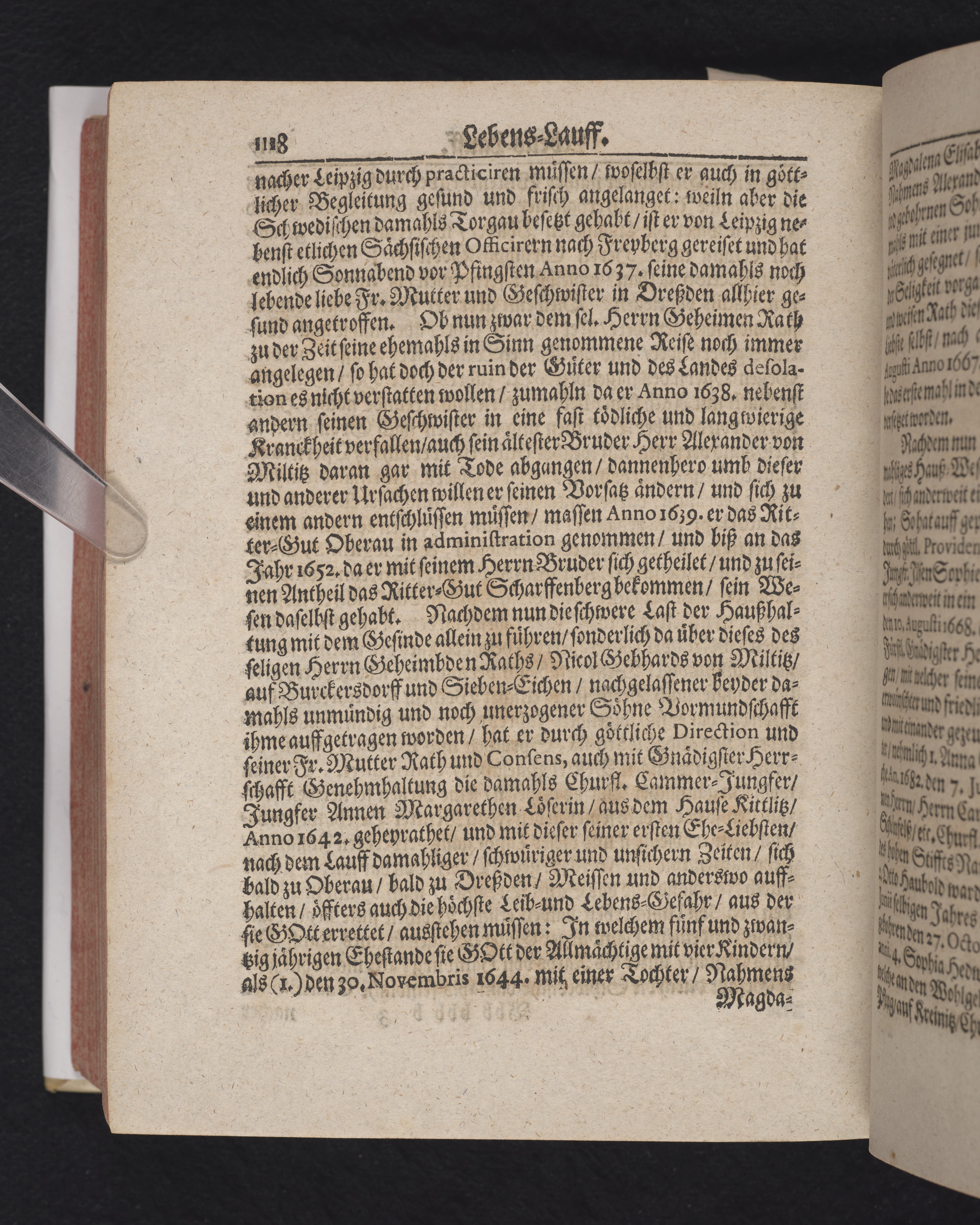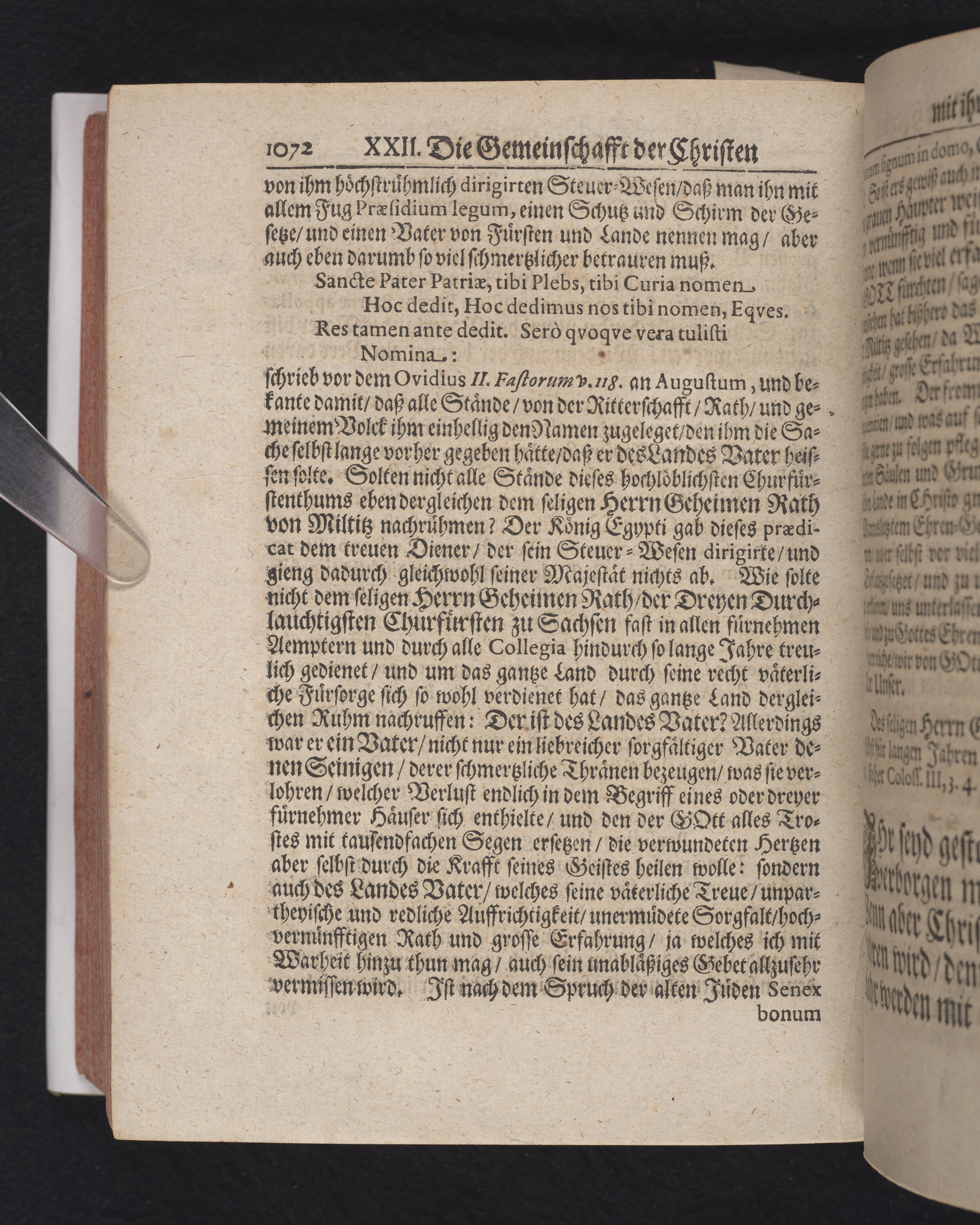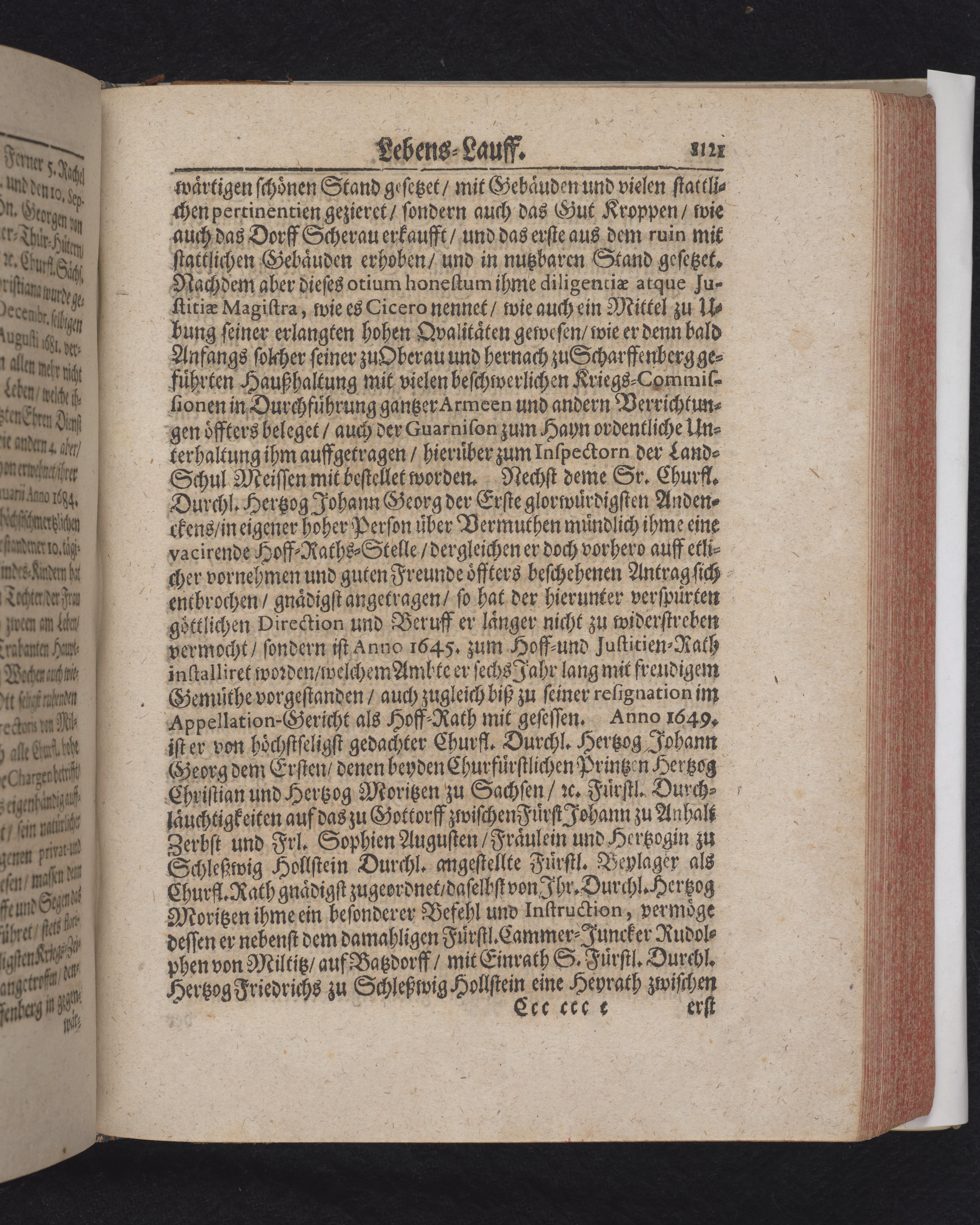 Ingår i en utgiven samling med 28 likpredikningar av Samuel Benedikt Carpzov: Grünende Gebeine, oder Leich-Predigten... Tryckt innehållsförteckning och register. Handskriven innehållsförteckning över de 28 likpredikningarna med bläck på främre försättsbladet (recto och verso).