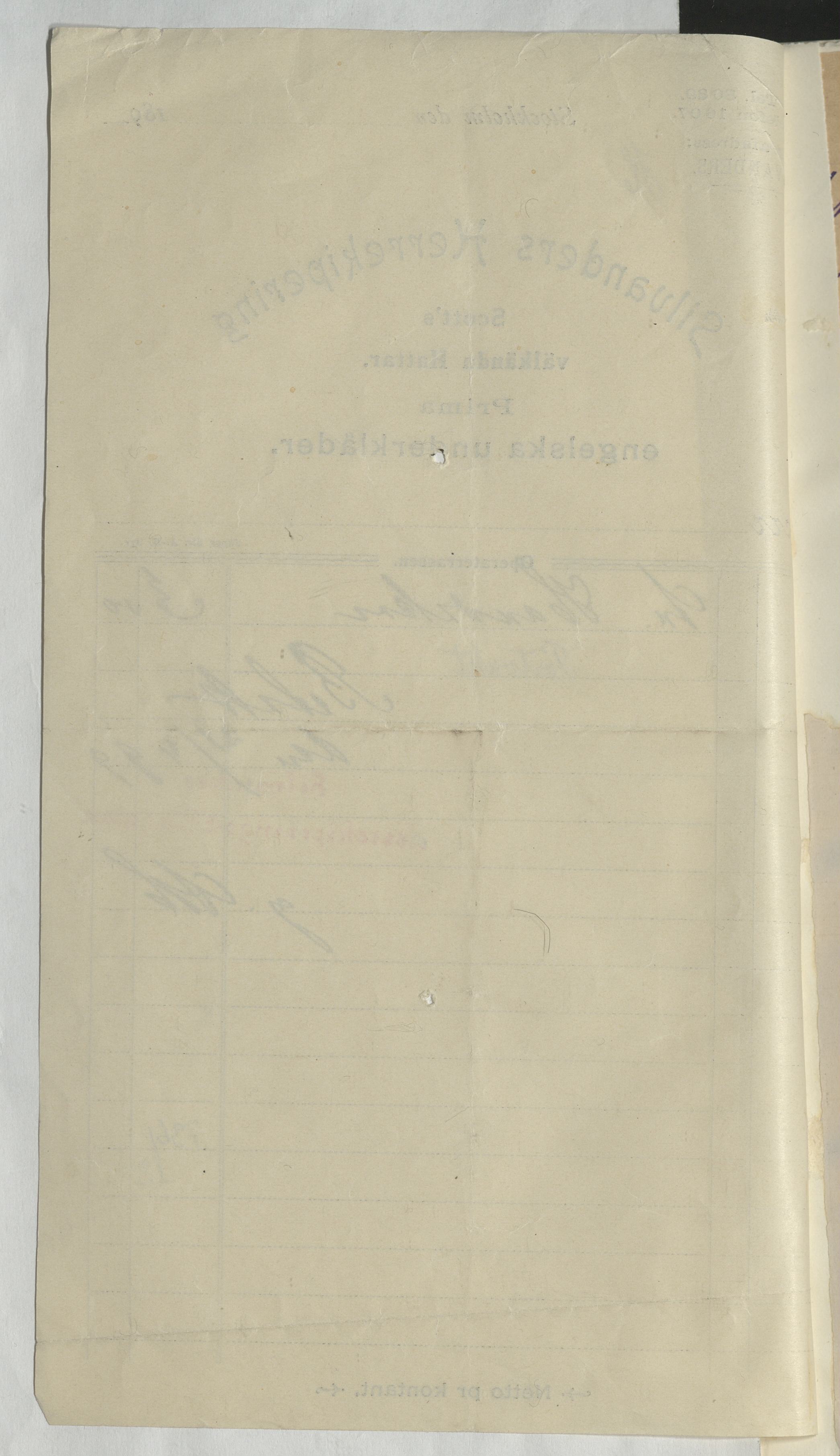 Kvitto från Silvanders Herrekipering