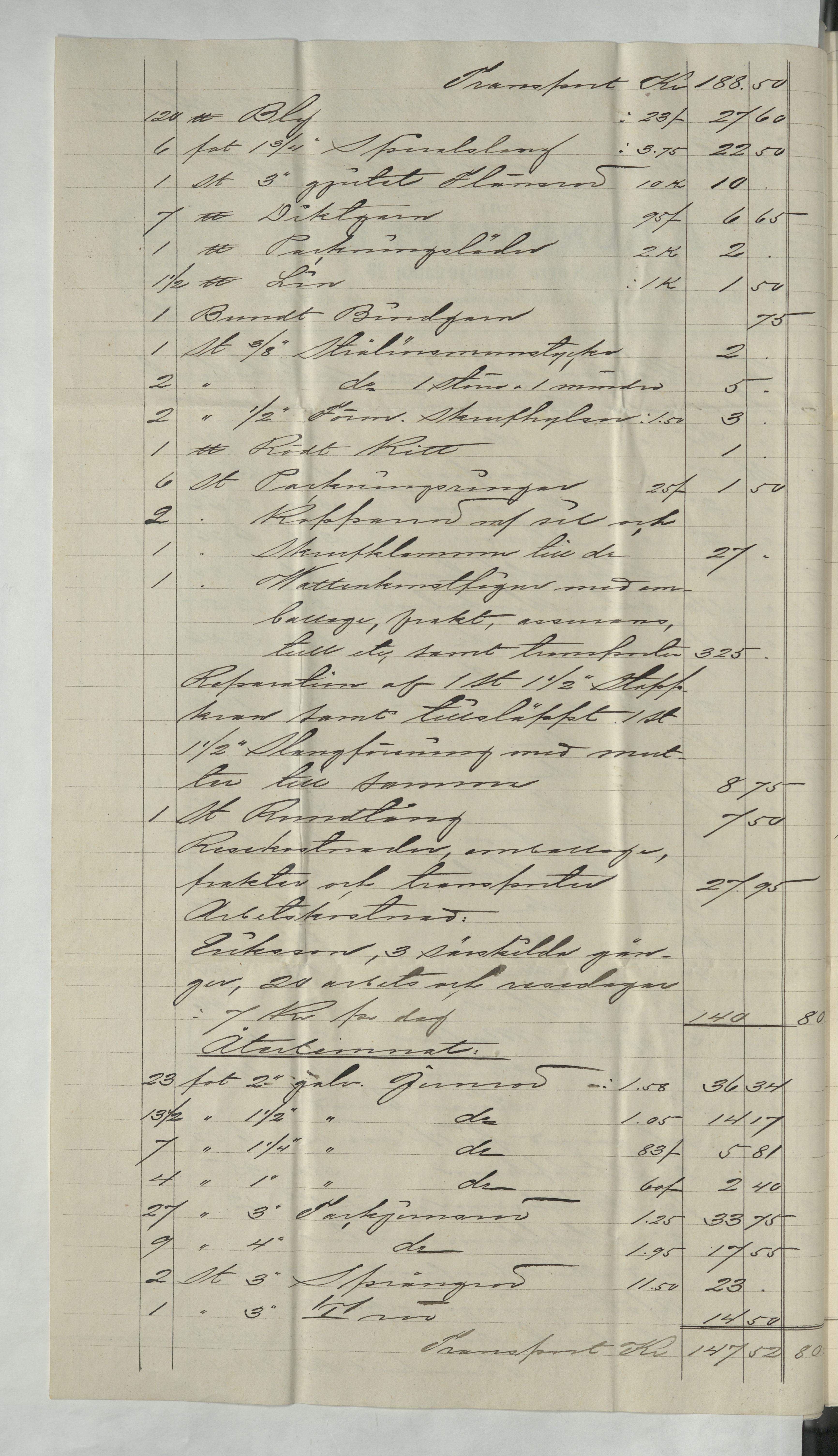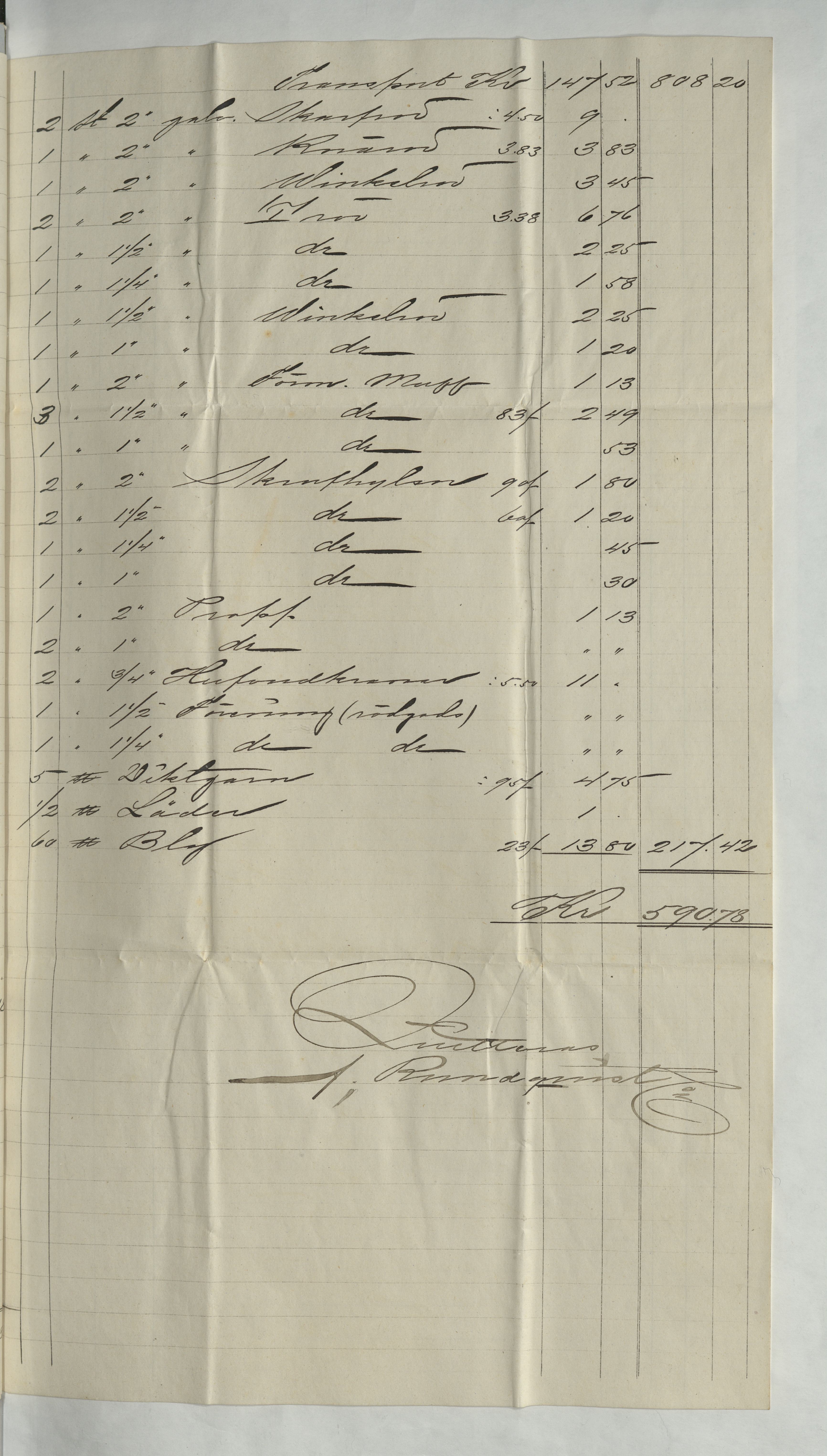 Kvitto från A. Rosberg & Co, ang "rörarbeten", 1876