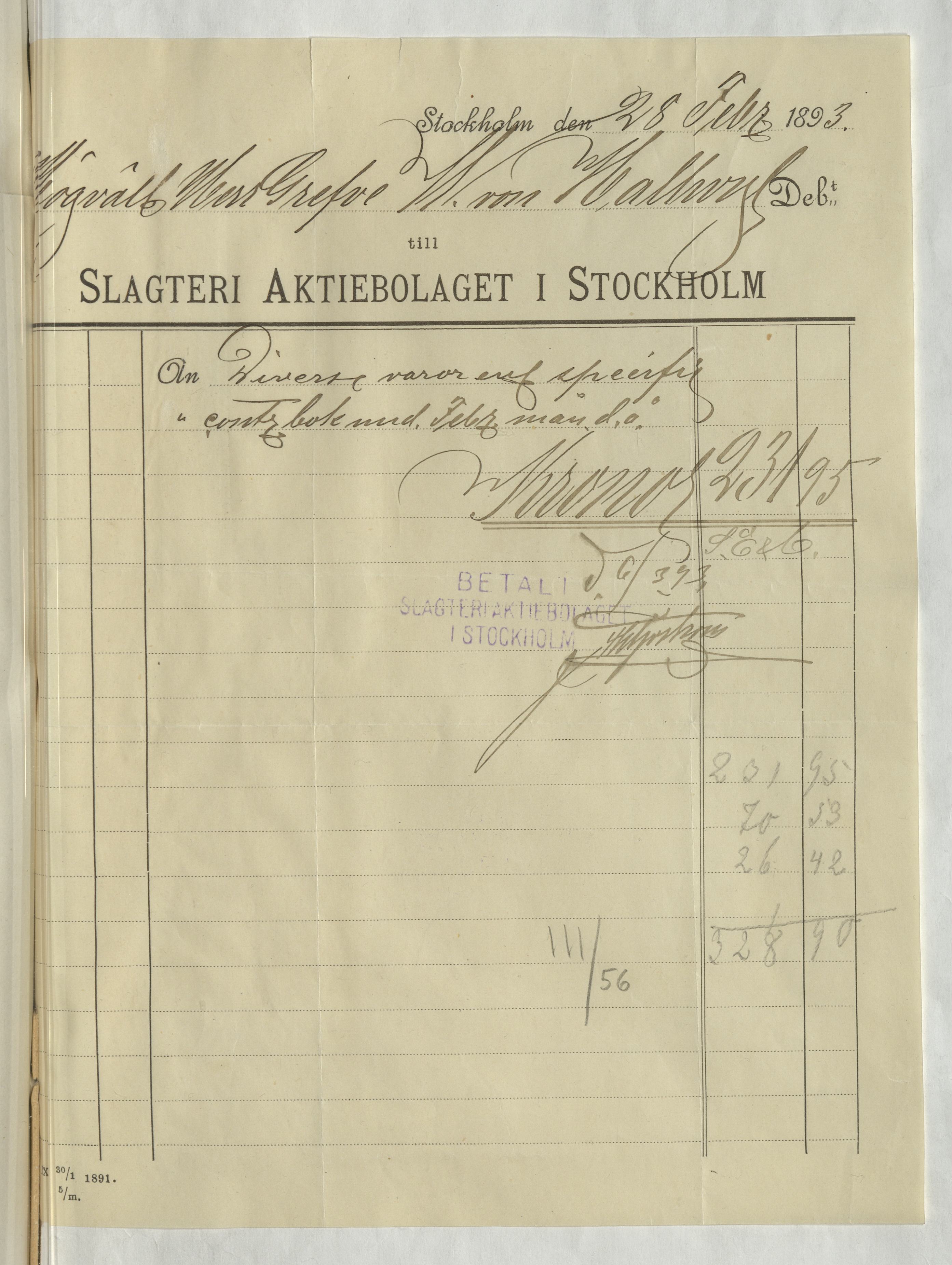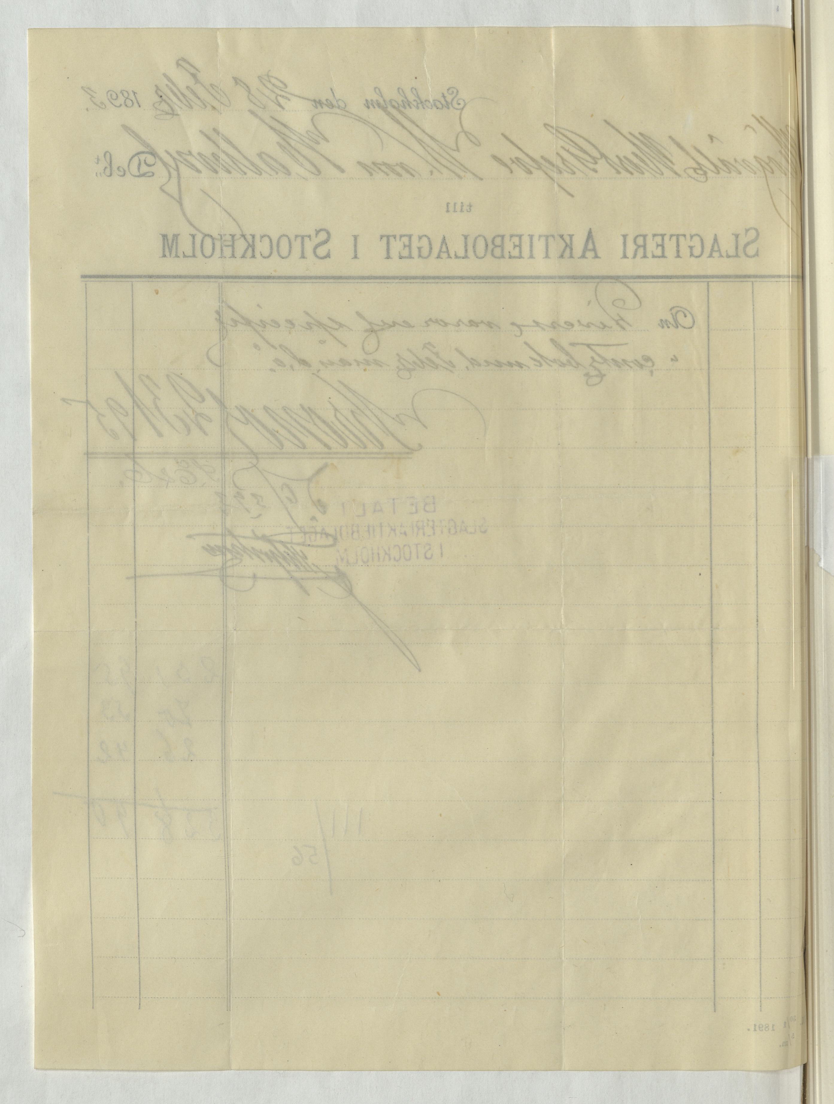 Kvitto från Slagteri Aktiebolaget i Stockholm