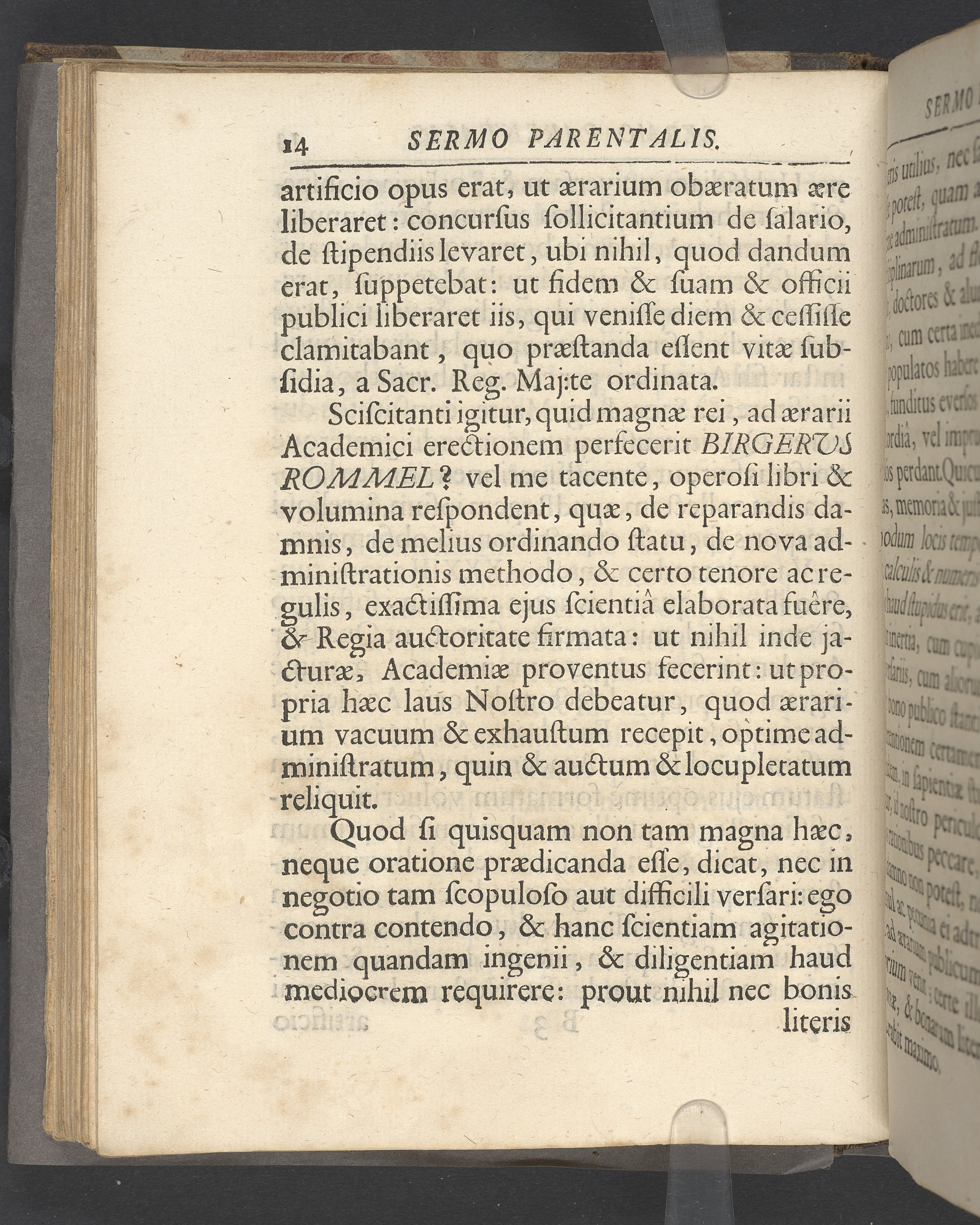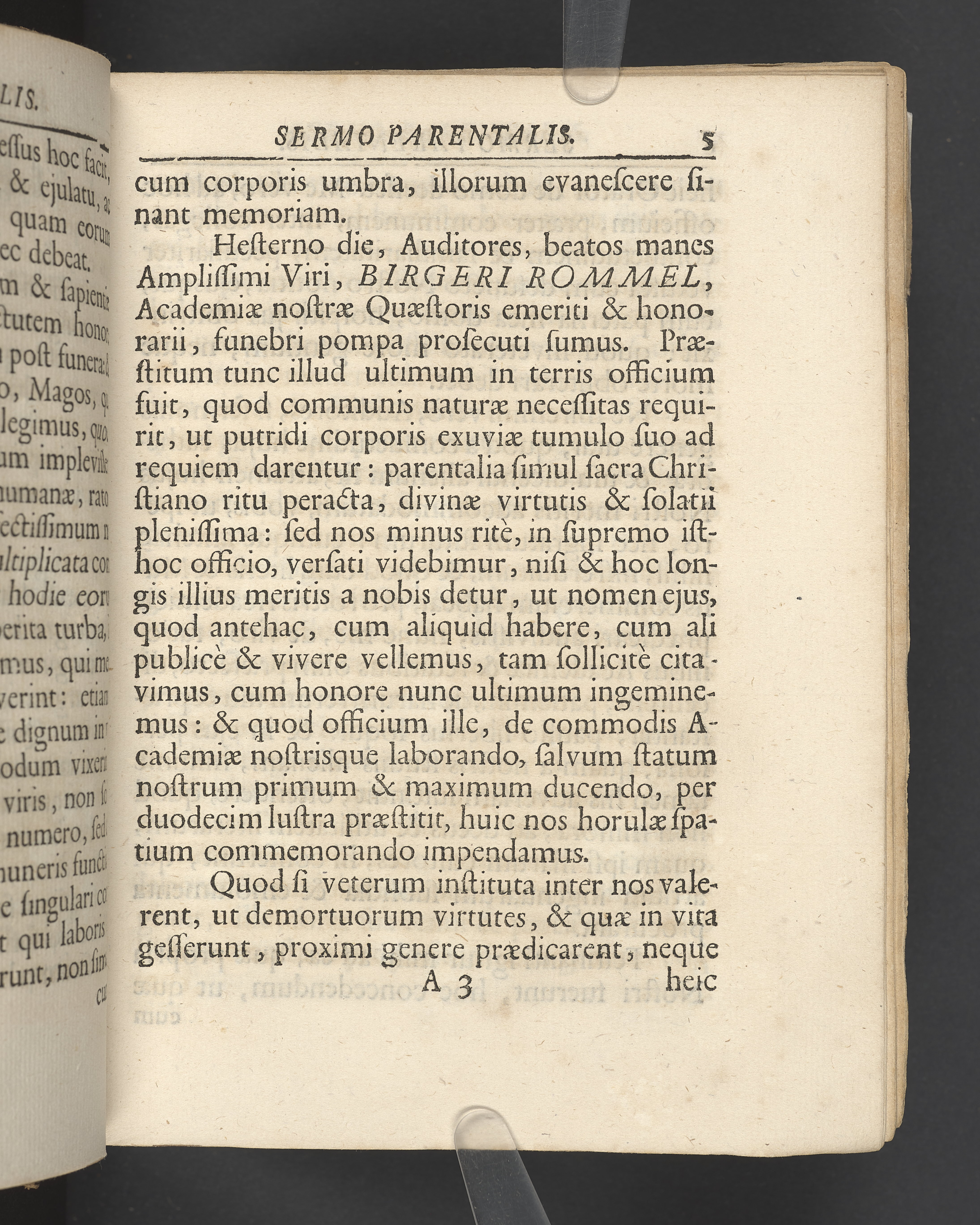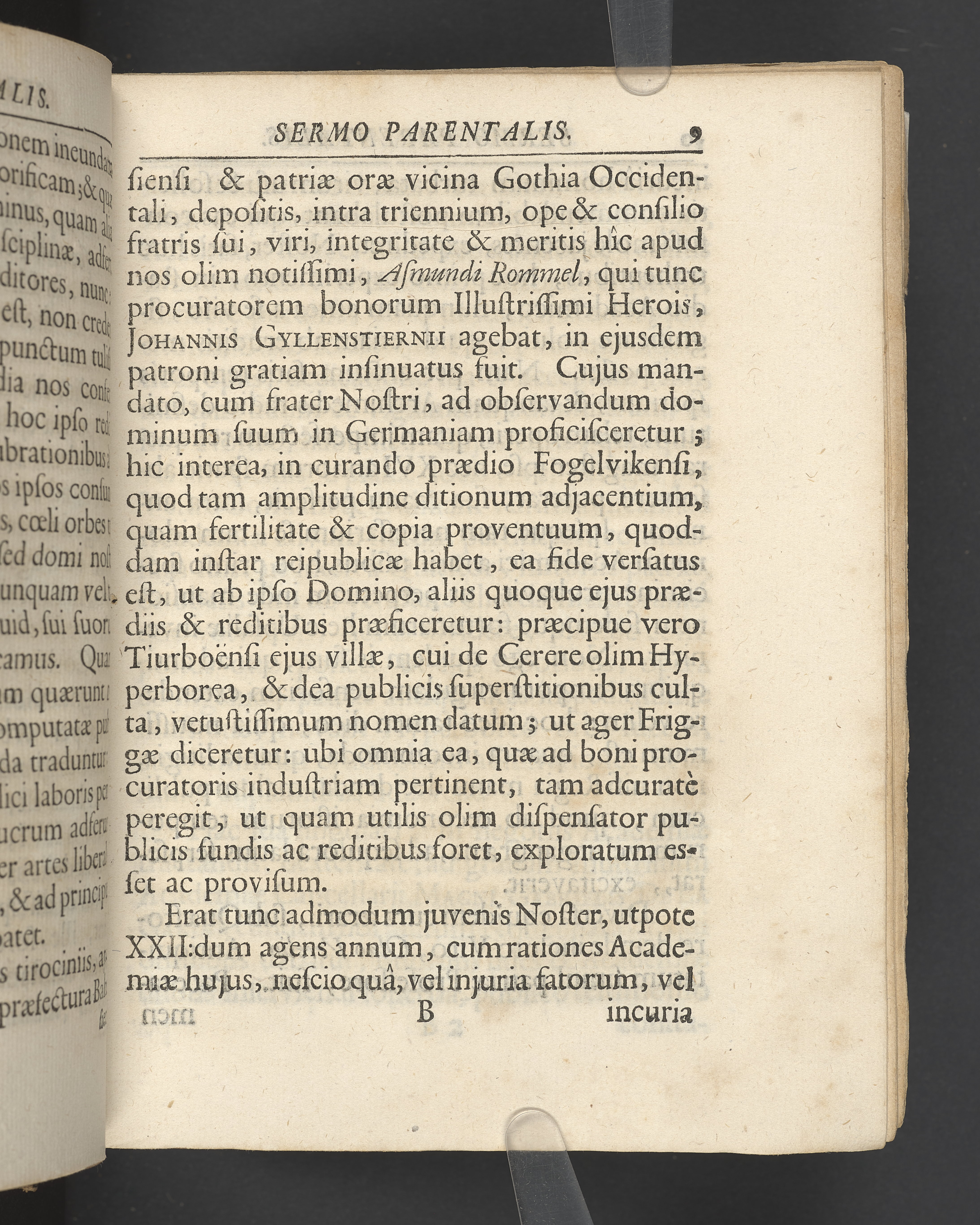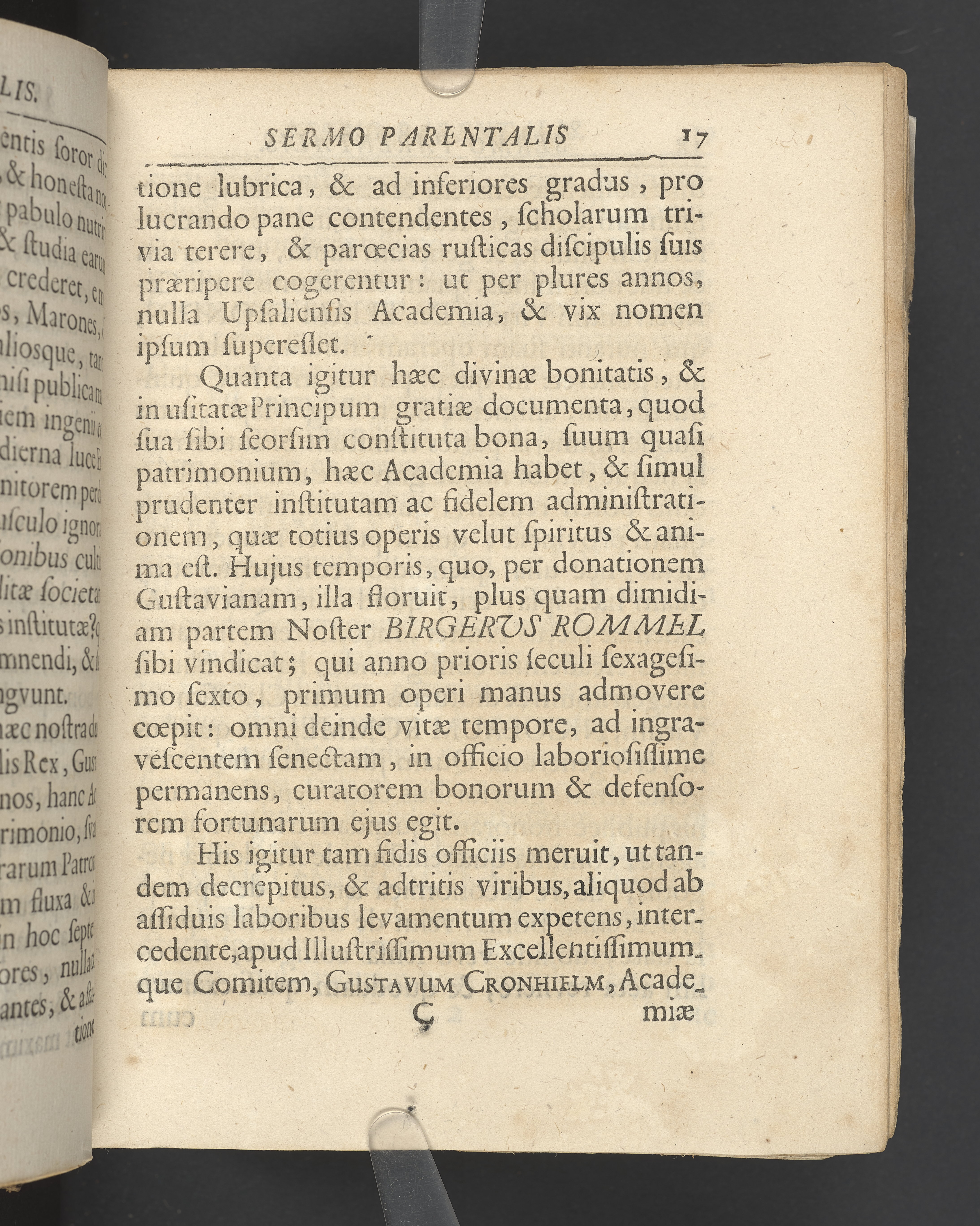 Sermo parentalis, quo vitam et merita quondam amplissimi integerrimique vir, Birgeri Rommel, Academiae Upsaliensis quaestoris honorarii, die exsequias ejus proxime sequente, IX decembris, Ao. MDCCXXVI, in audit. Gustav majori celebravit Johannes Hermansson profess. Skytt.