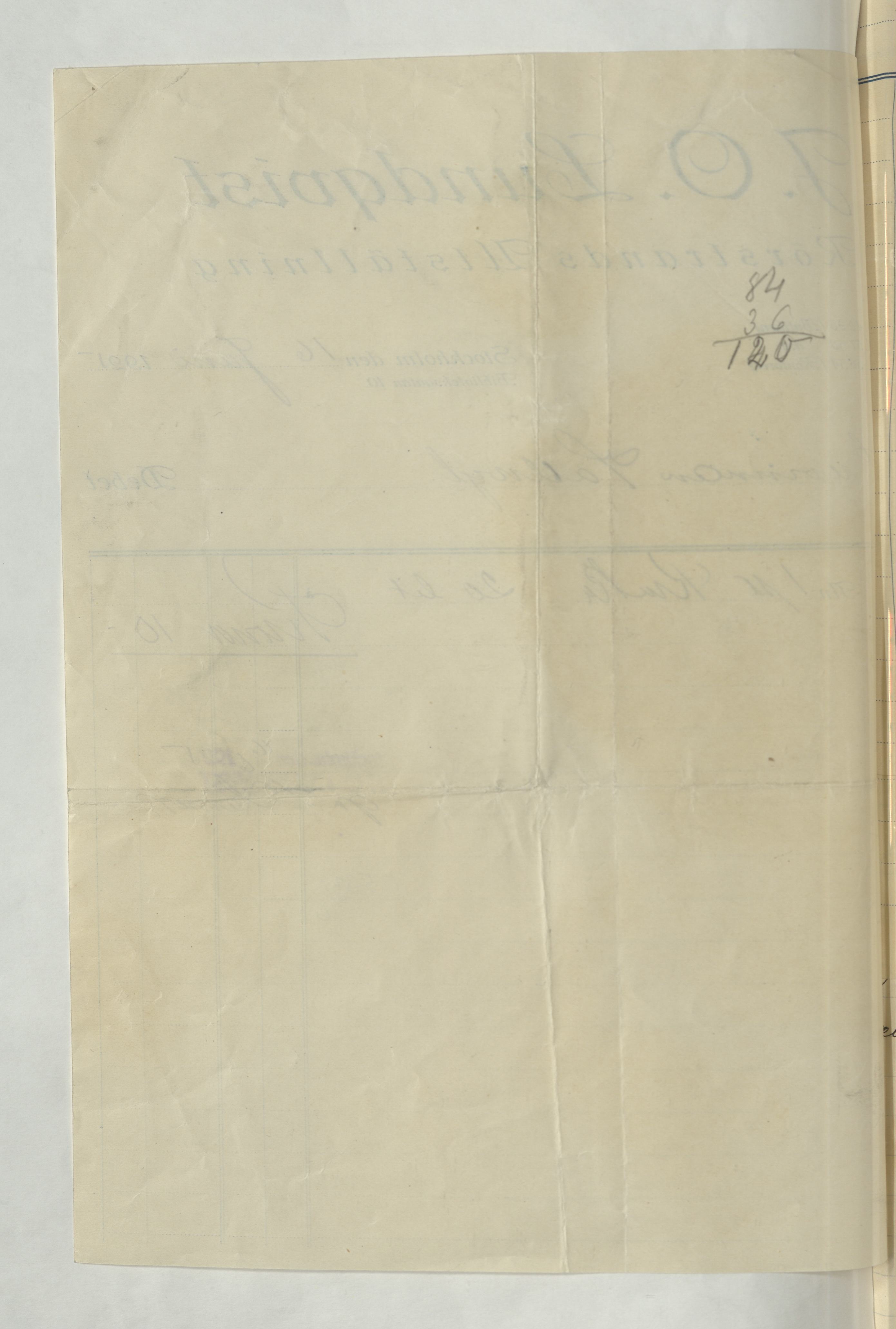 Kvitto från J. O. Lundqvist, Rörstrands Utställning, 1925