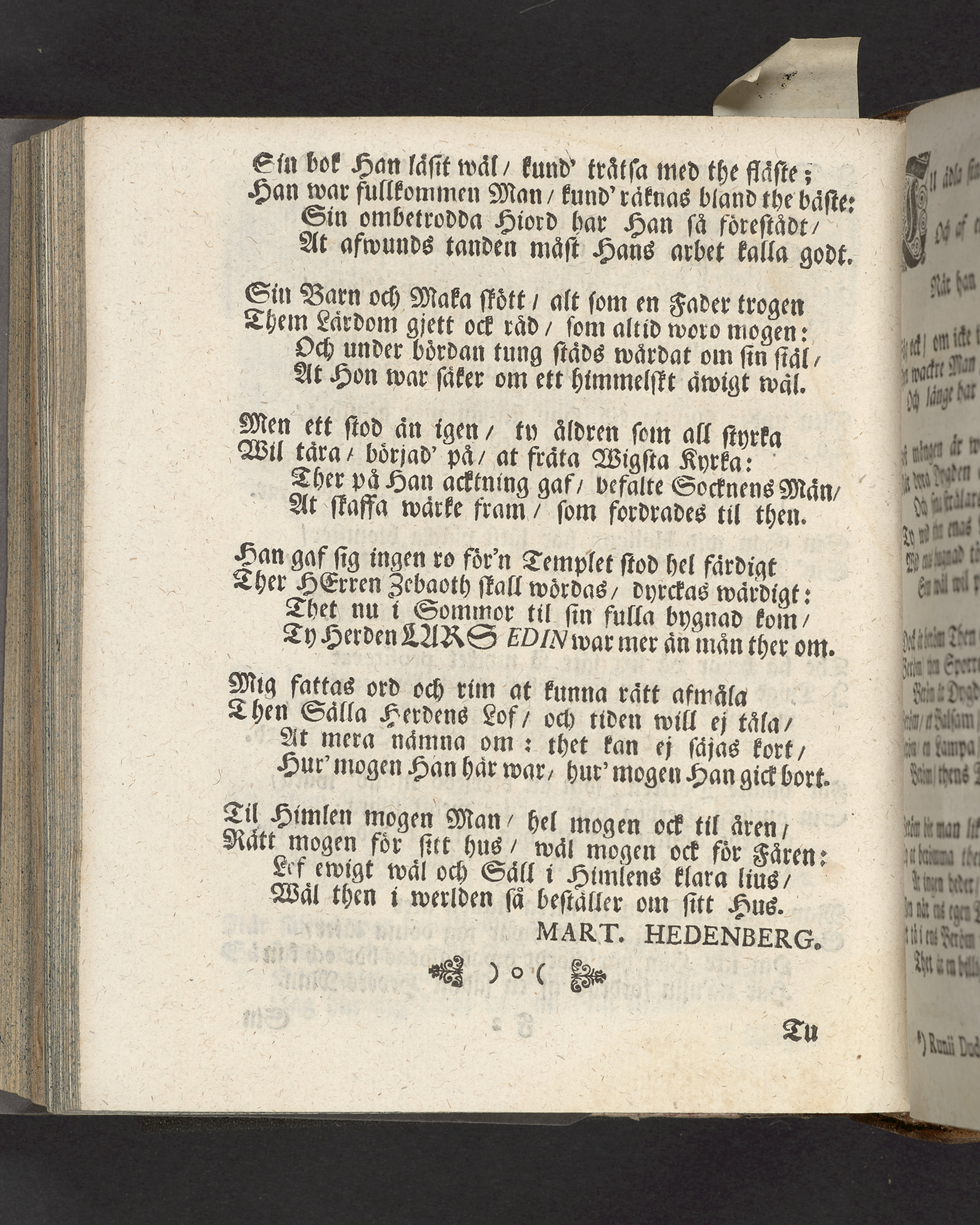I trycket ingår även ett antal epicedier olika delförfattare under titeln "Äre-minne, öfwer then i lifstiden ärewördige och höglärde herren... Laurentius Edin..." (s. 41ff).