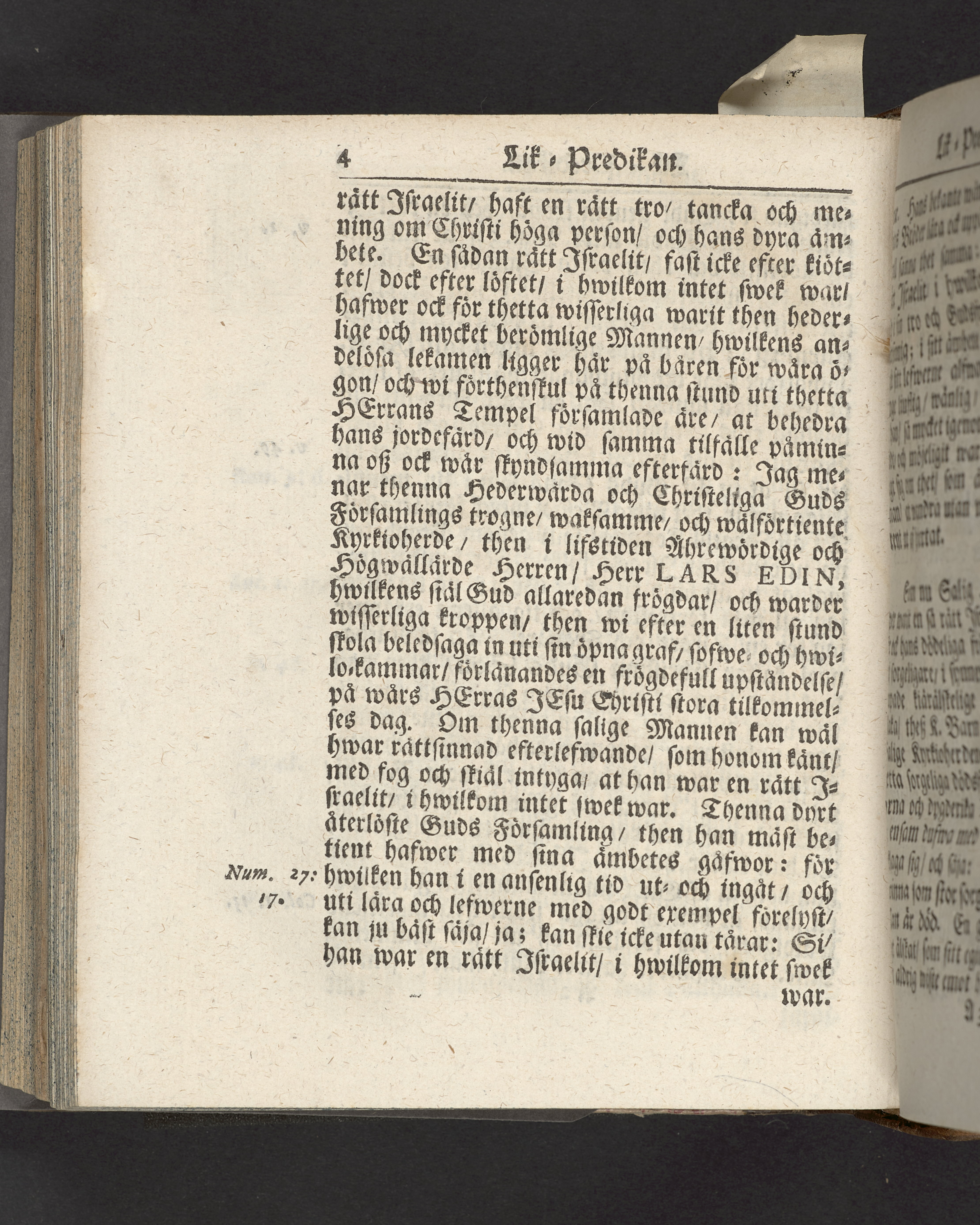 En trogen och from christens goda samwets-witnesbyrd i lif och i död, bewisat af thes gudeligen förda lefwernes enfallighet, uprichtighet och sanning både för Gud och menniskior, uti en christelig lik-predikan, tå ... Lars Edin, för : thetta mycket berömlig kyrkioherde i Wigsta, men nu hos Gud ewinnerligen salig, i följe af en högt-förnäm och hederlig process, beledsagades til sin wälbestälta graf uti Wigsta kyrkia den 5. september, åhr 1732. Hållen af kyrkioherden : i Tegelsmora Elia P. Ruth ... Tryckt i Upsala.