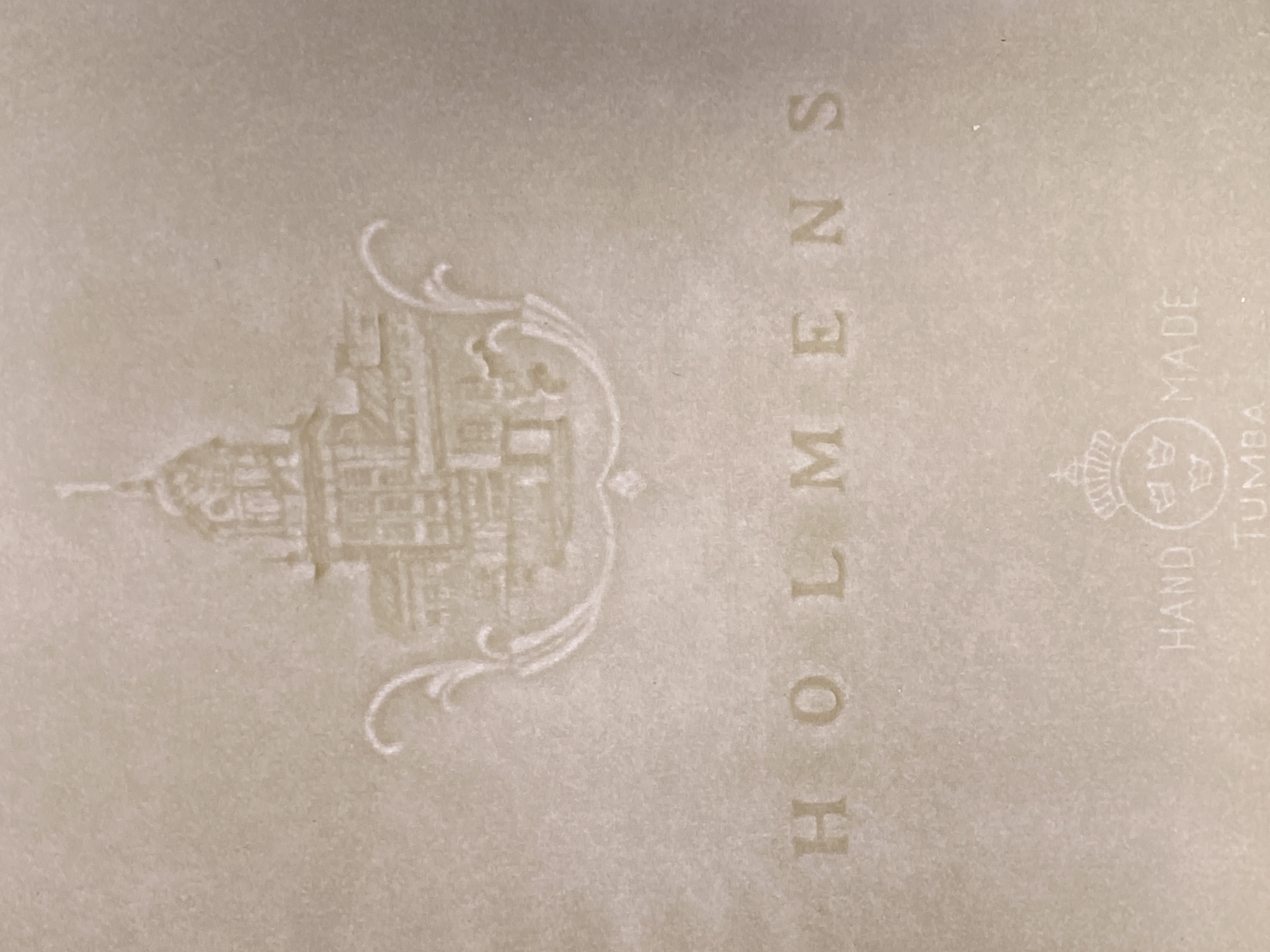 En bunt handgjort papper med 2 ark, tillverkade vid Tumba bruk. Vattenmärke: Holmens samt Tumba bruks logotyp ("Hand / Made / Tumba") .