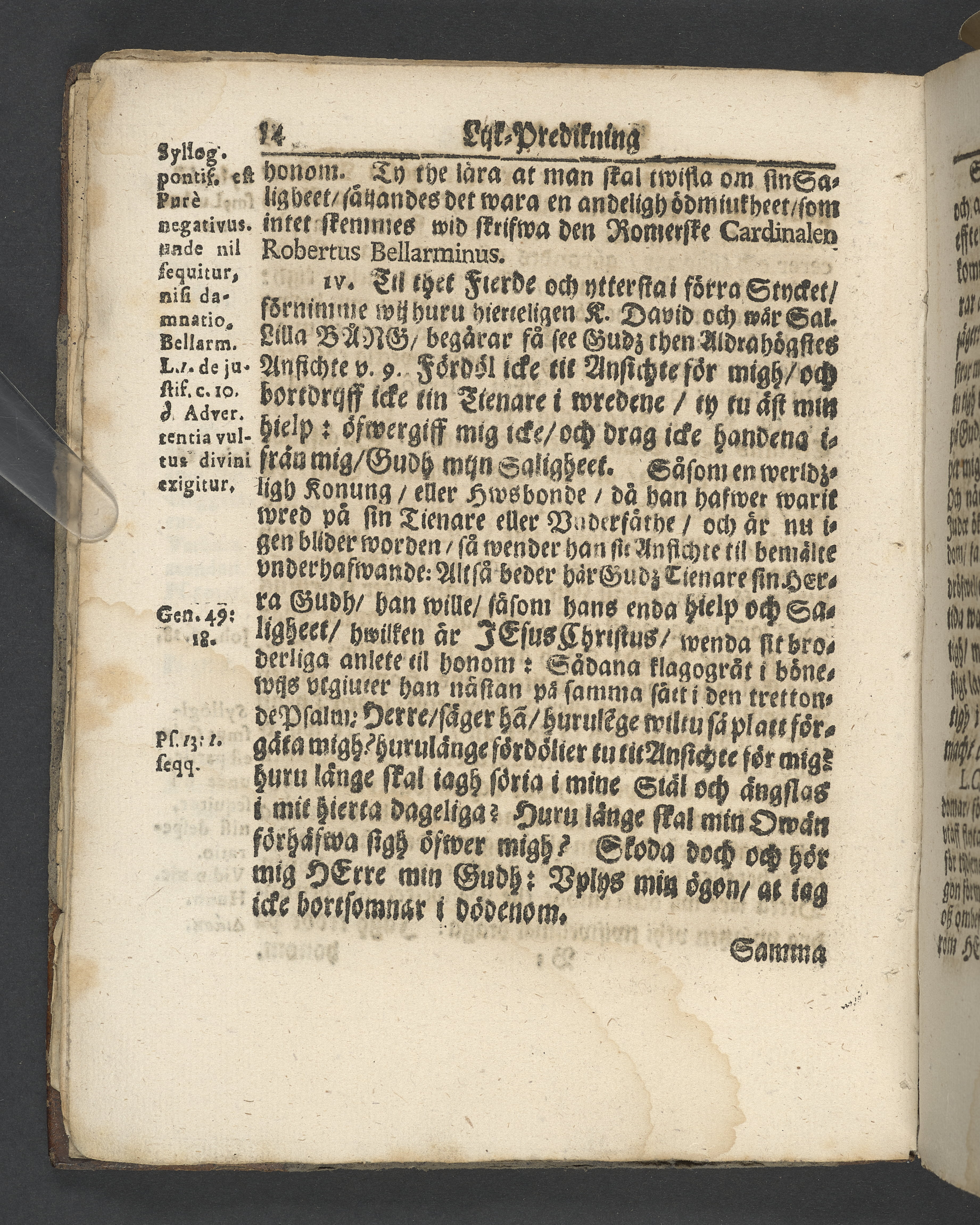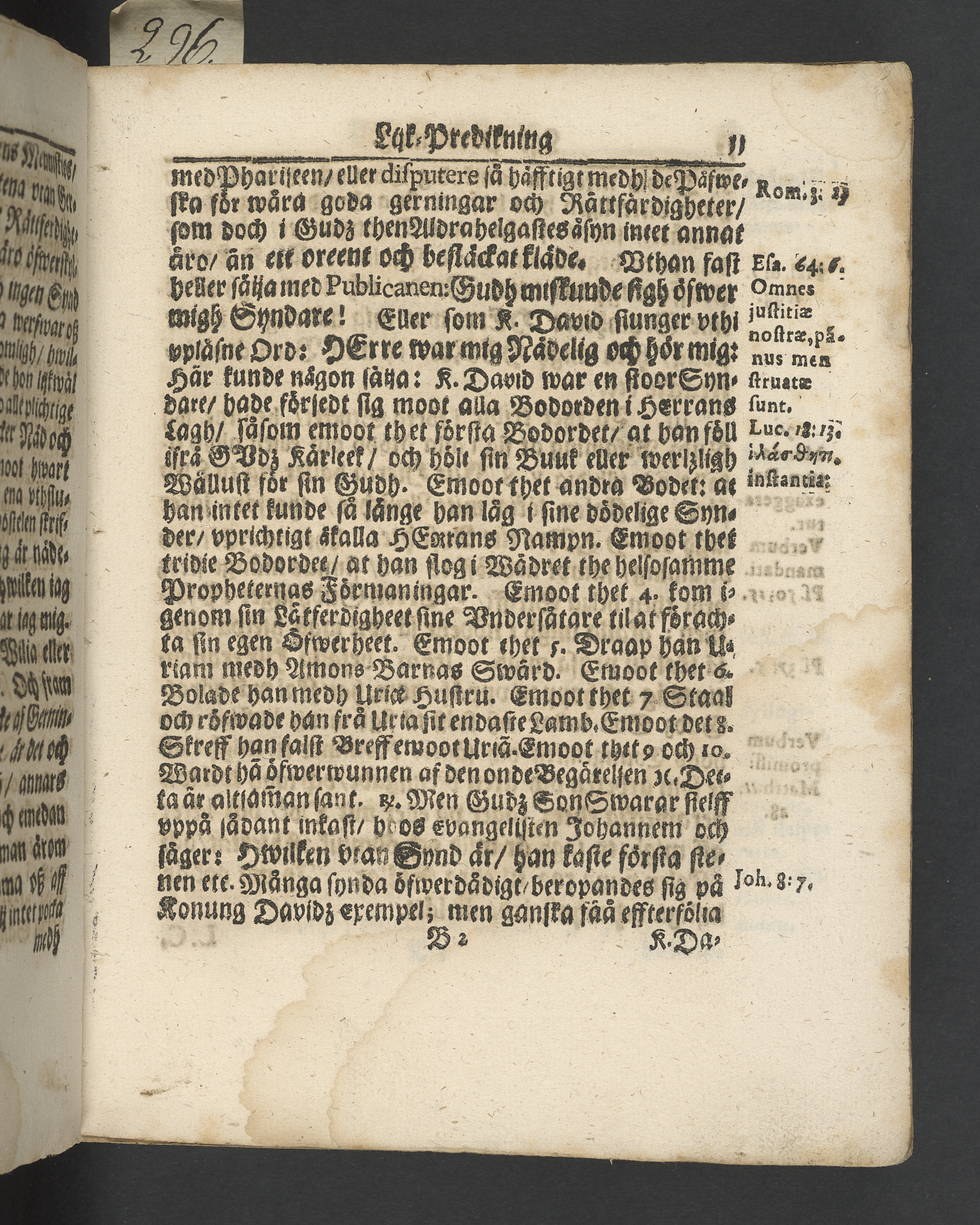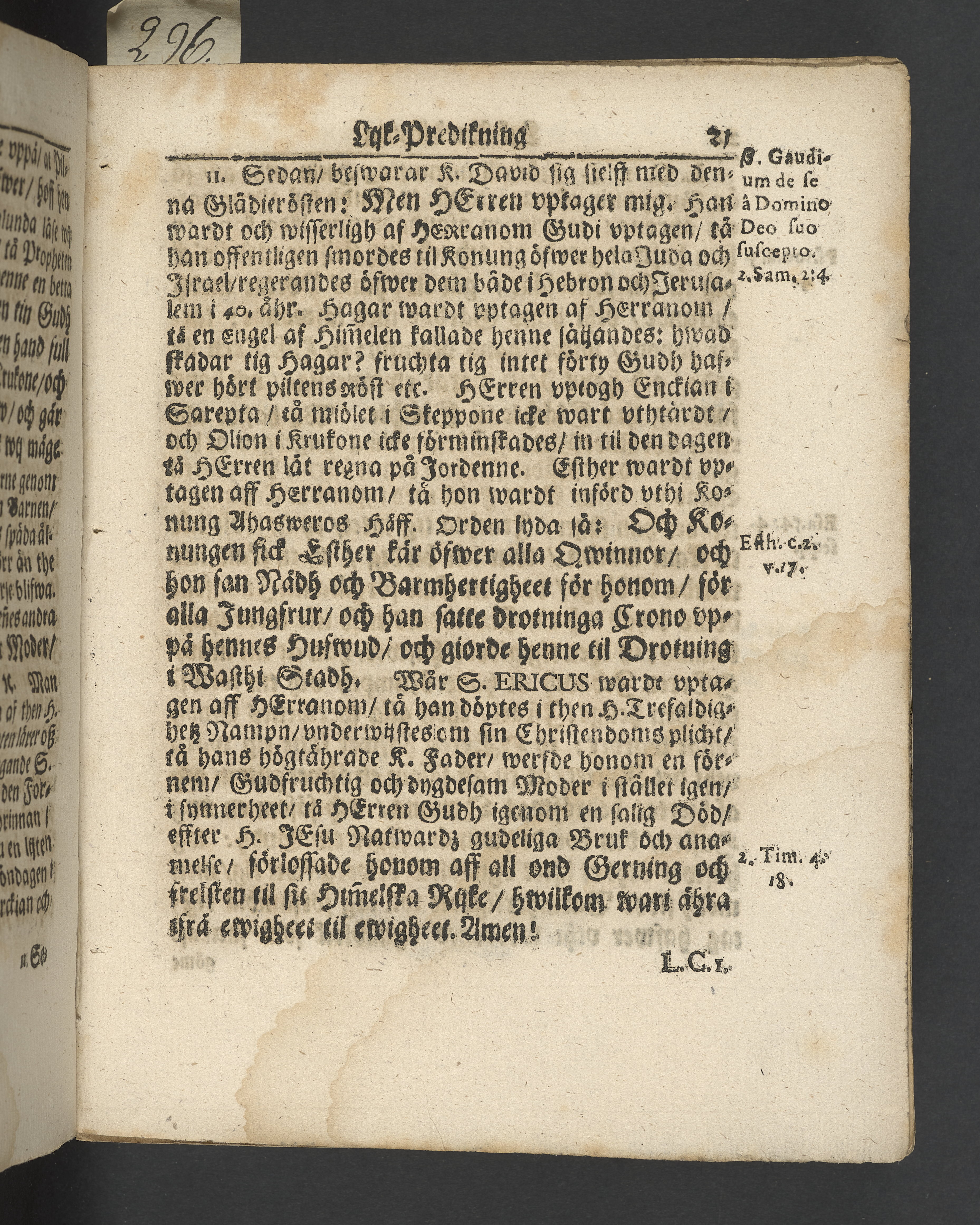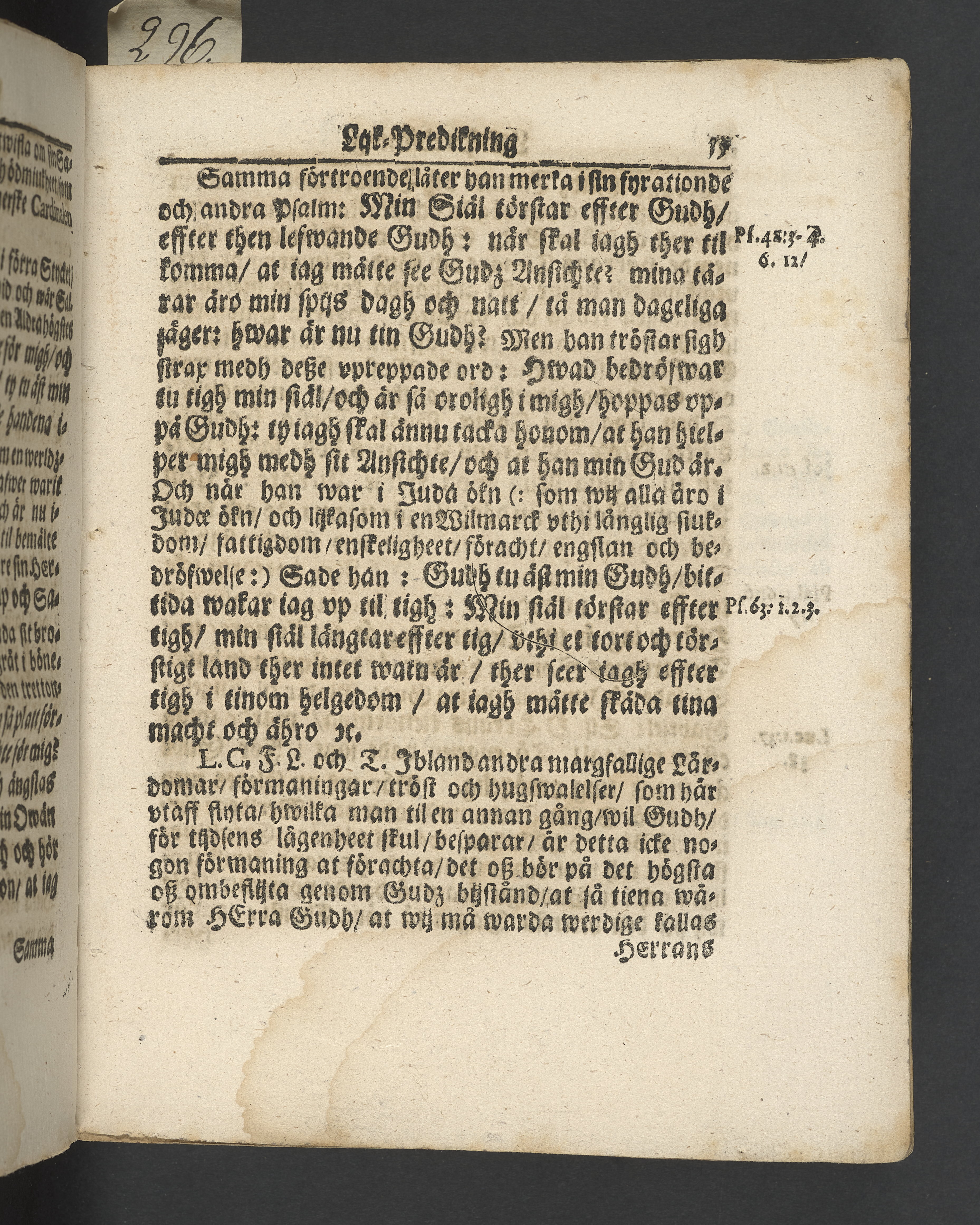 I jämförelse med annat exemplar verkar det sakna 4 sidor i slutet, sannolikt tacksägelsen.