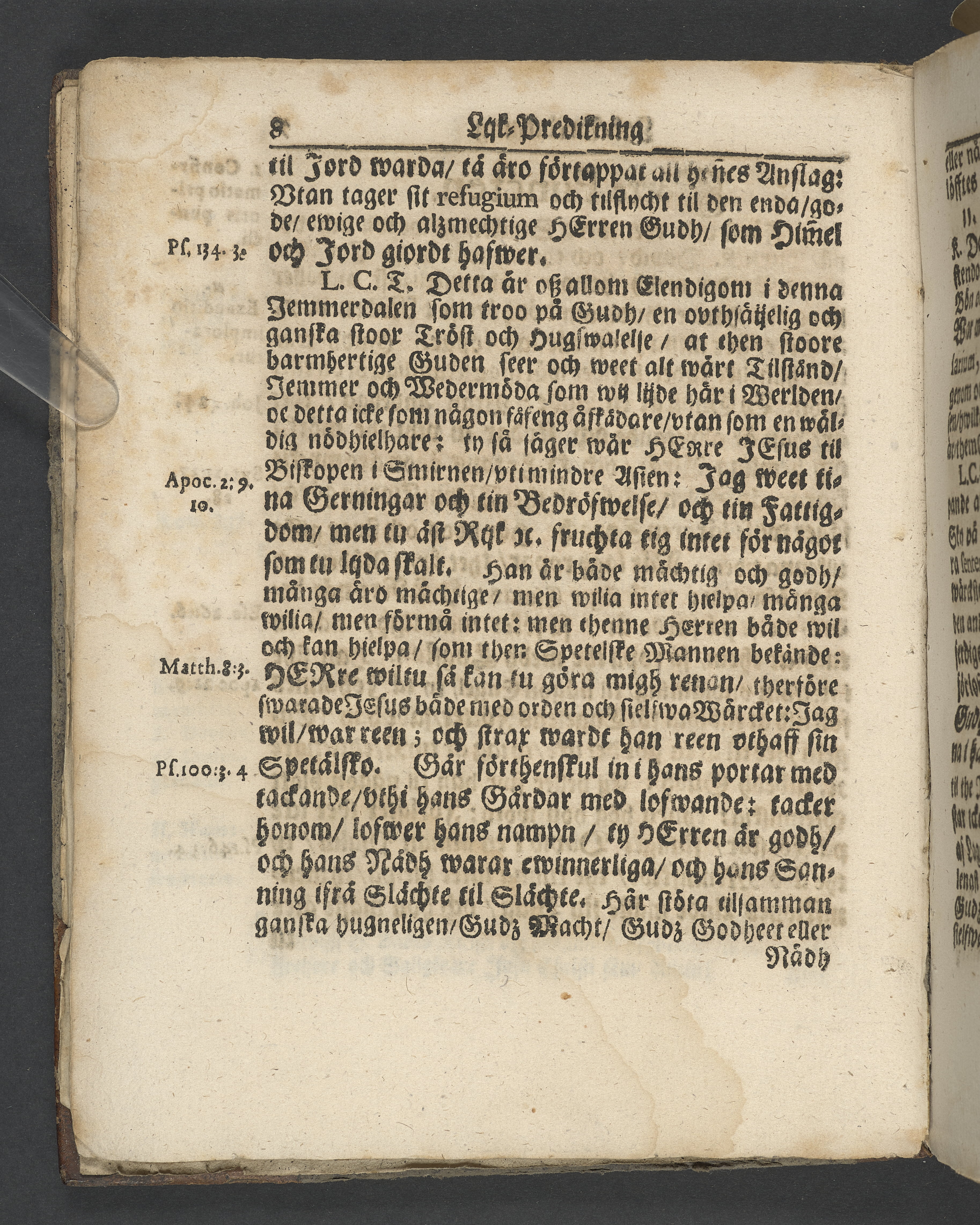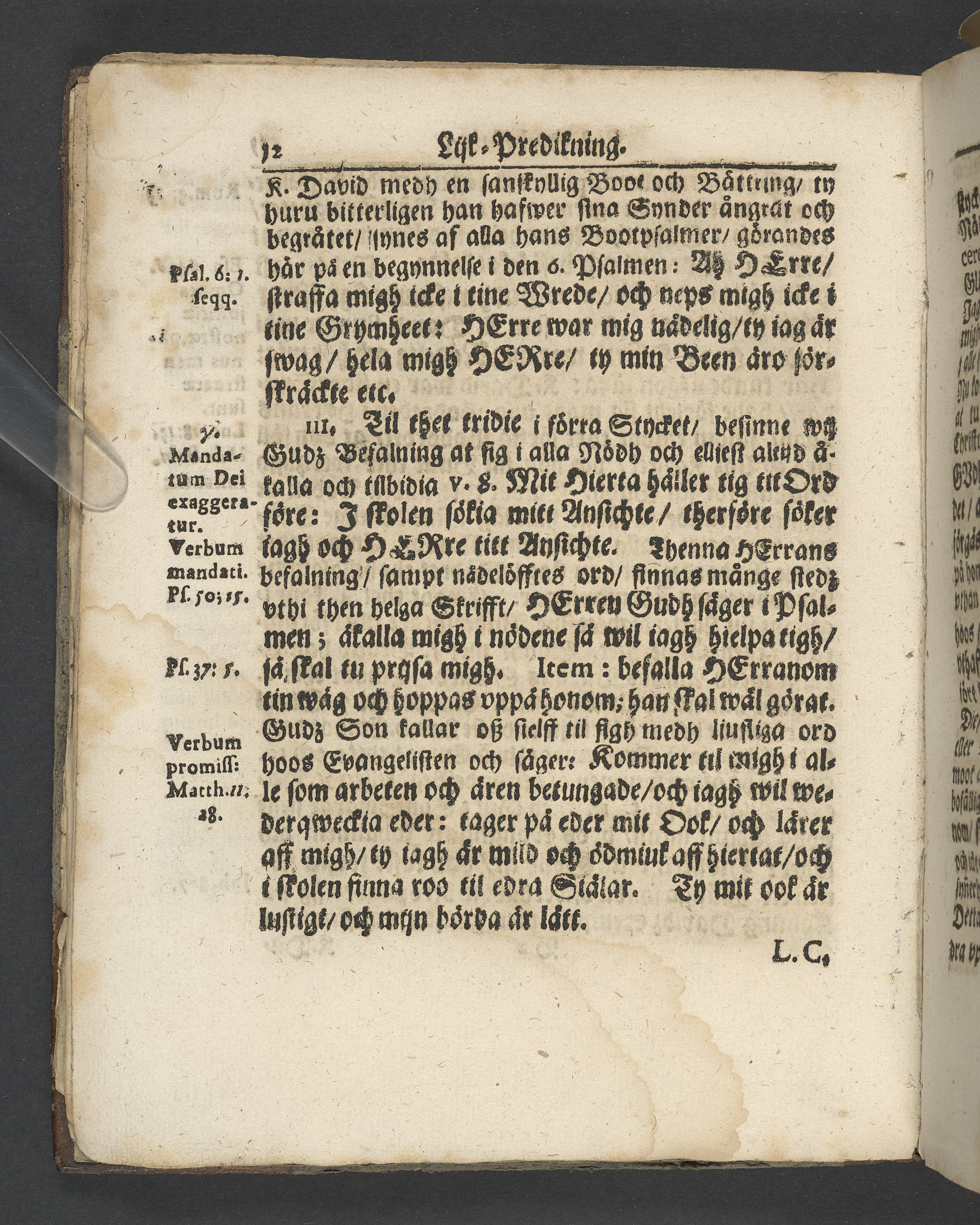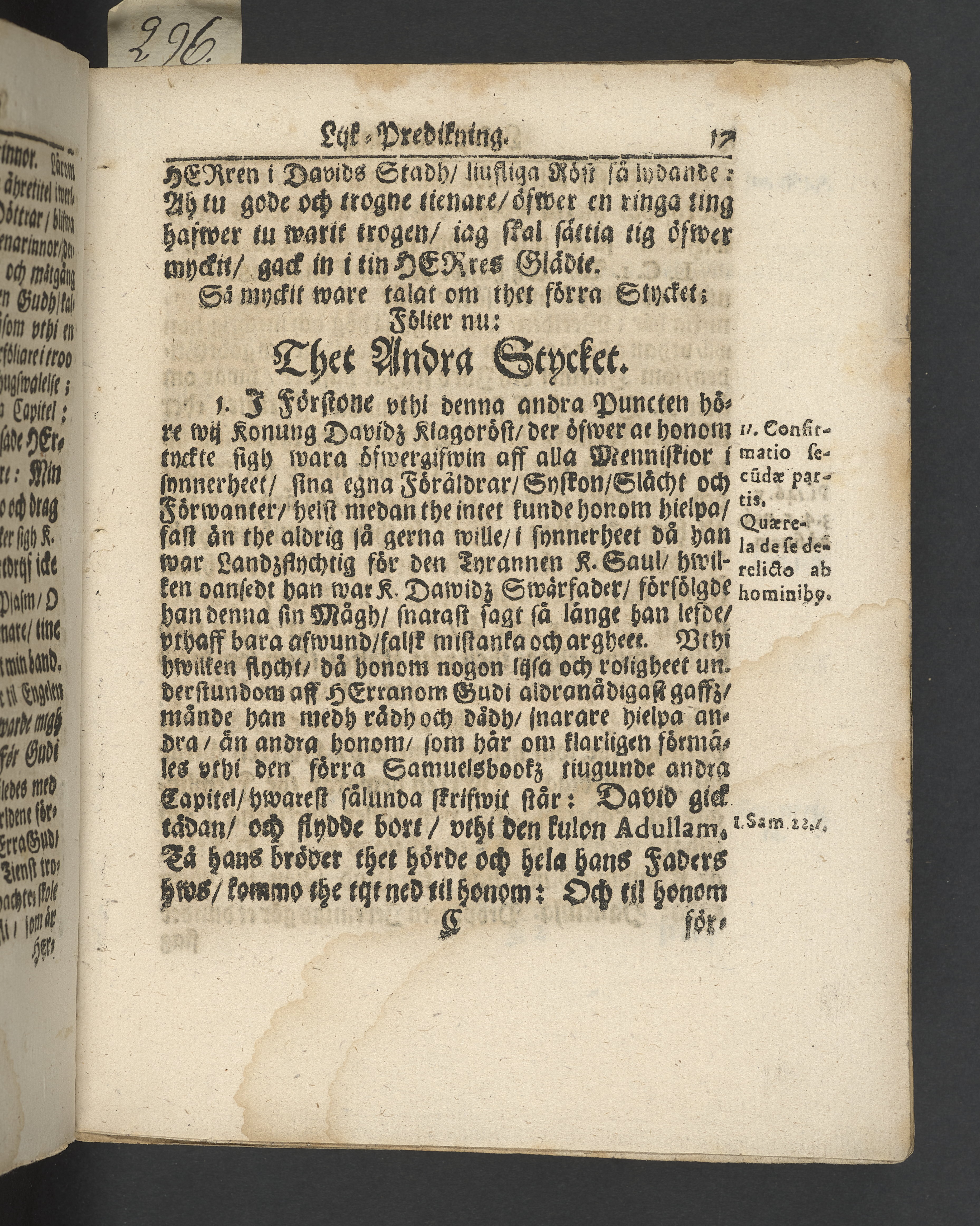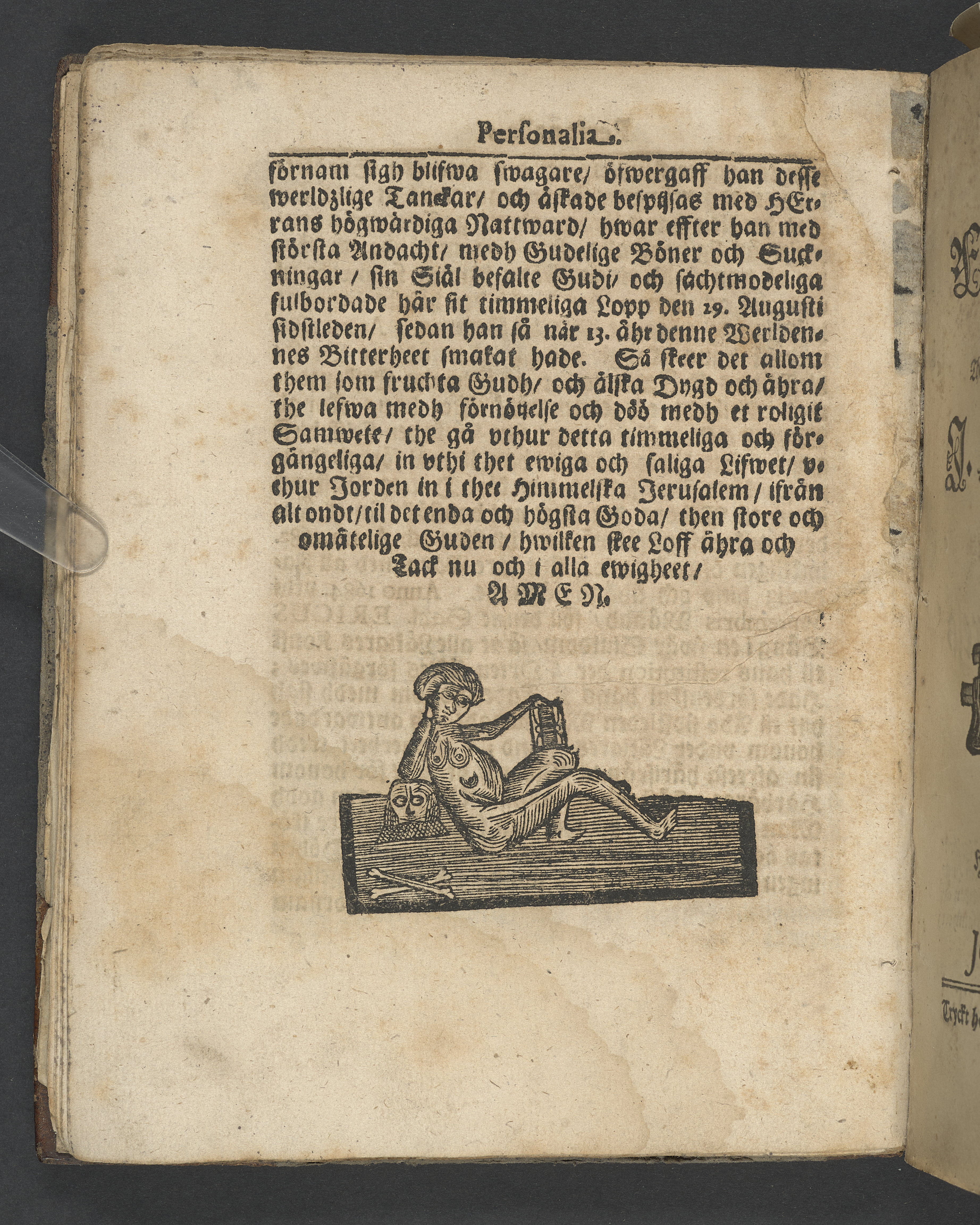 I jämförelse med annat exemplar verkar det sakna 4 sidor i slutet, sannolikt tacksägelsen.