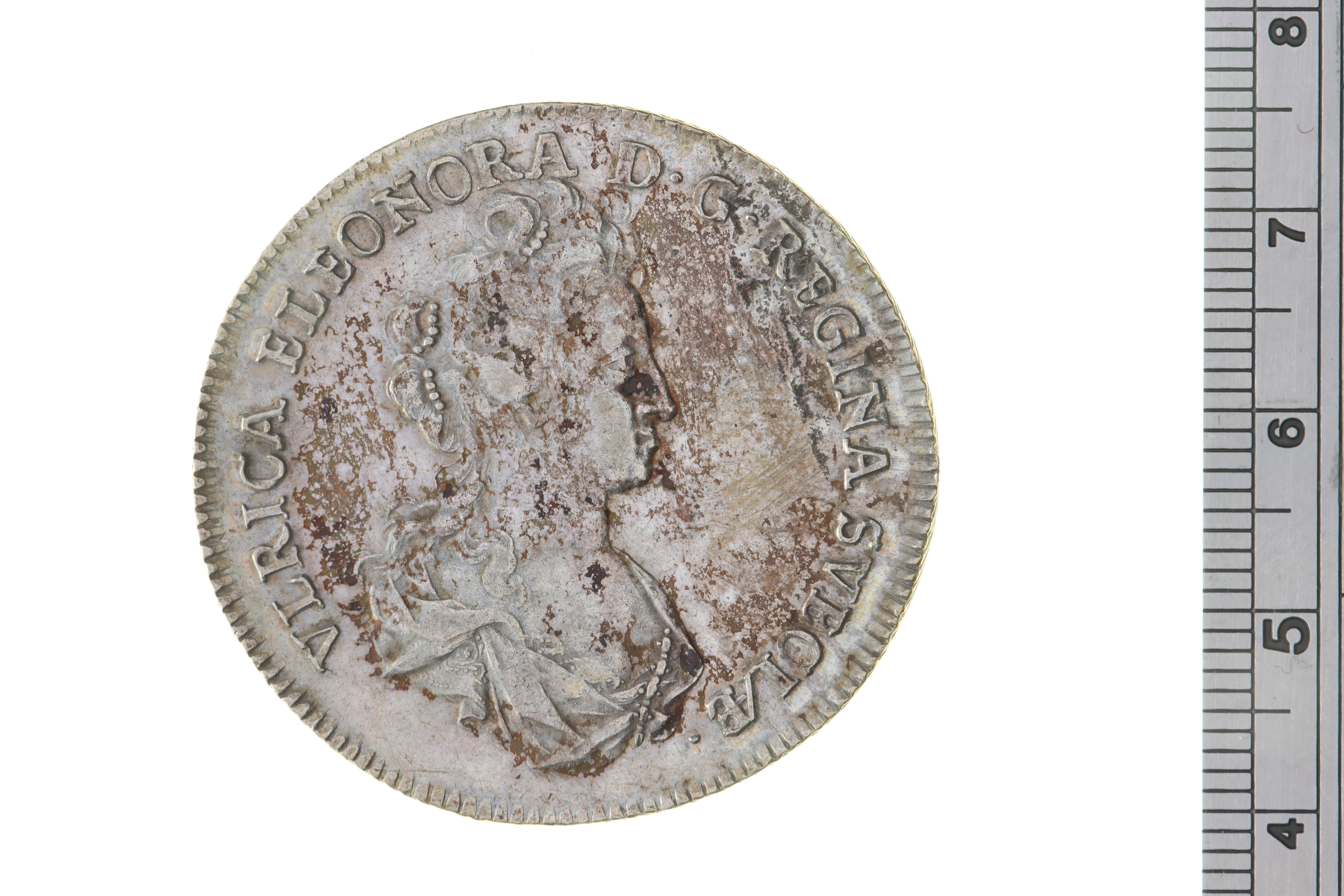 Upphov: Ulrika Eleonora av Sverige. Media: Jonsson, Eeva. Ekonomiska museet - Kungliga myntkabinettet/SHM, (CC BY 4.0) Du får bearbeta och dela verket för alla ändamål, även kommersiella, så länge du anger upphovsperson och licensgivare.