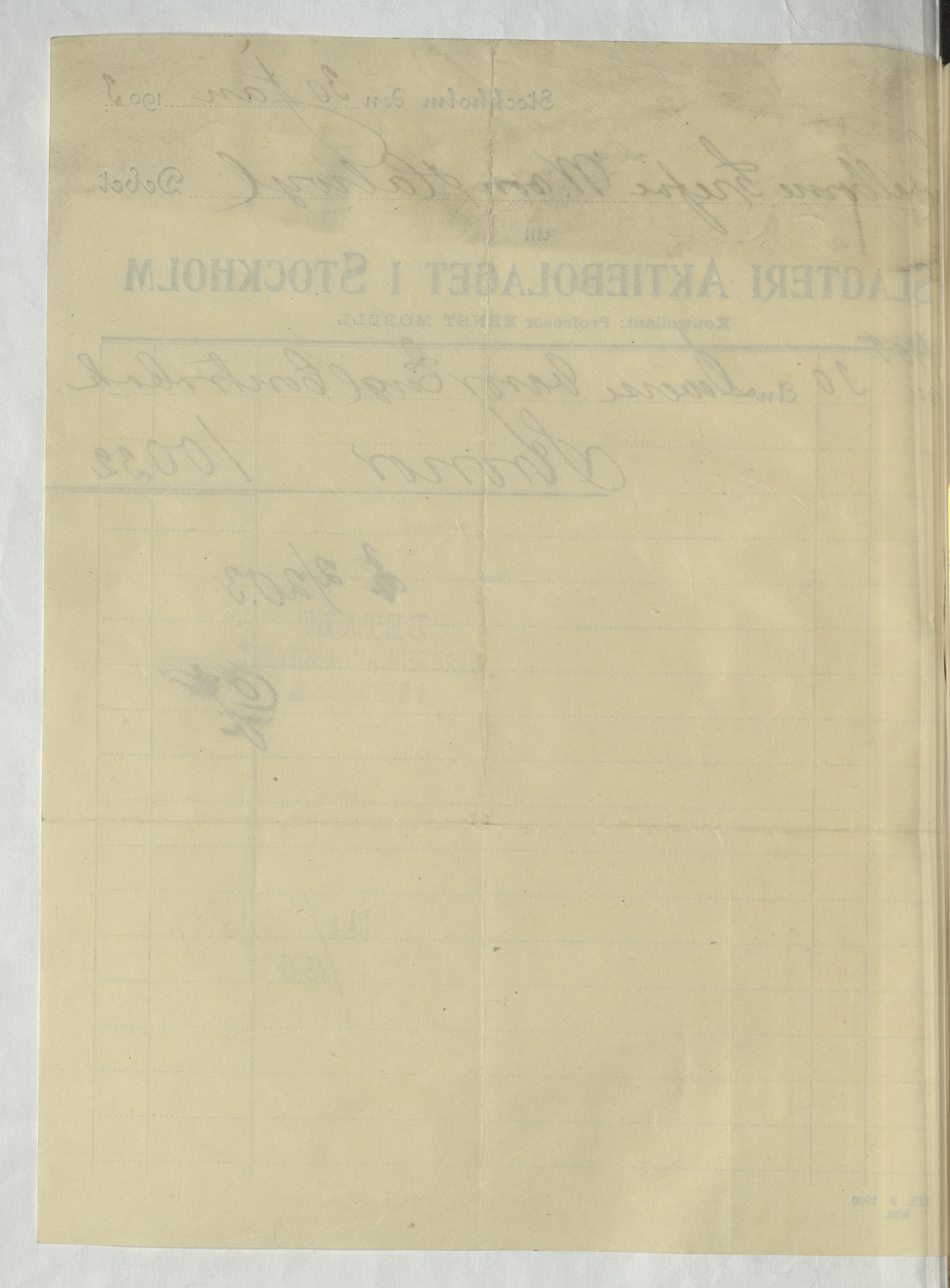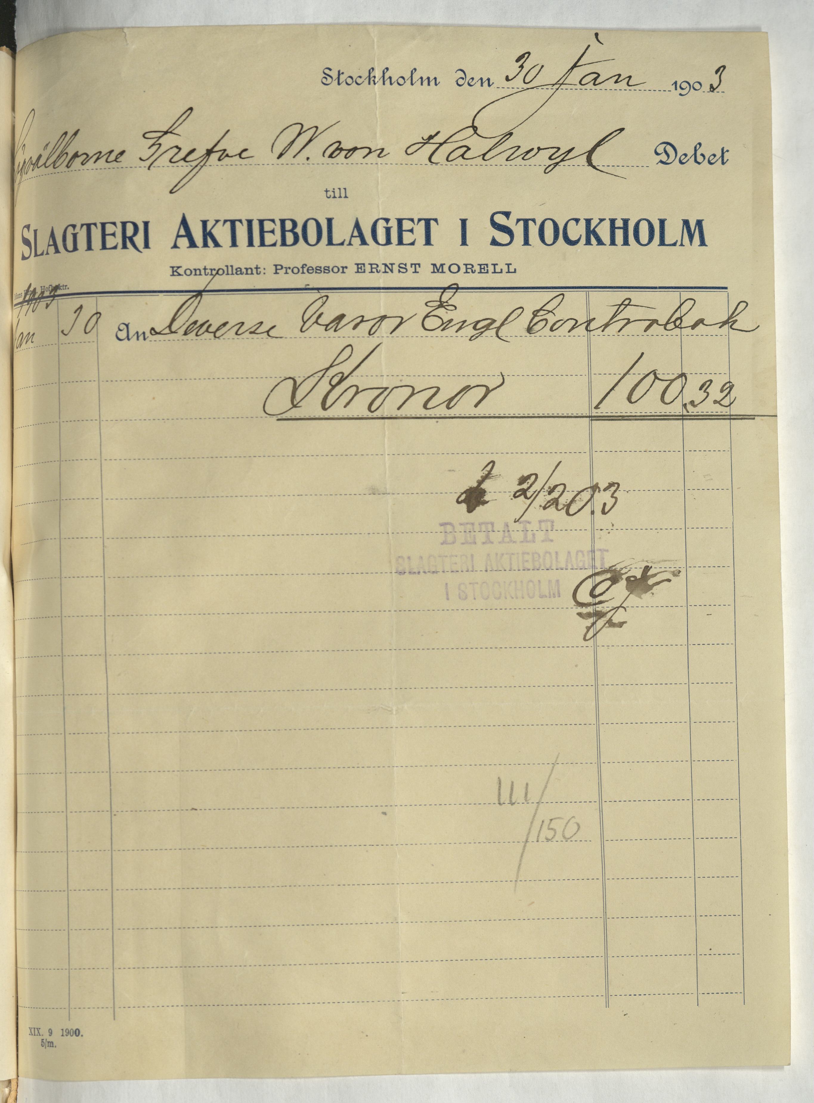 Kvitto från Slagteri Aktiebolaget i Stockholm