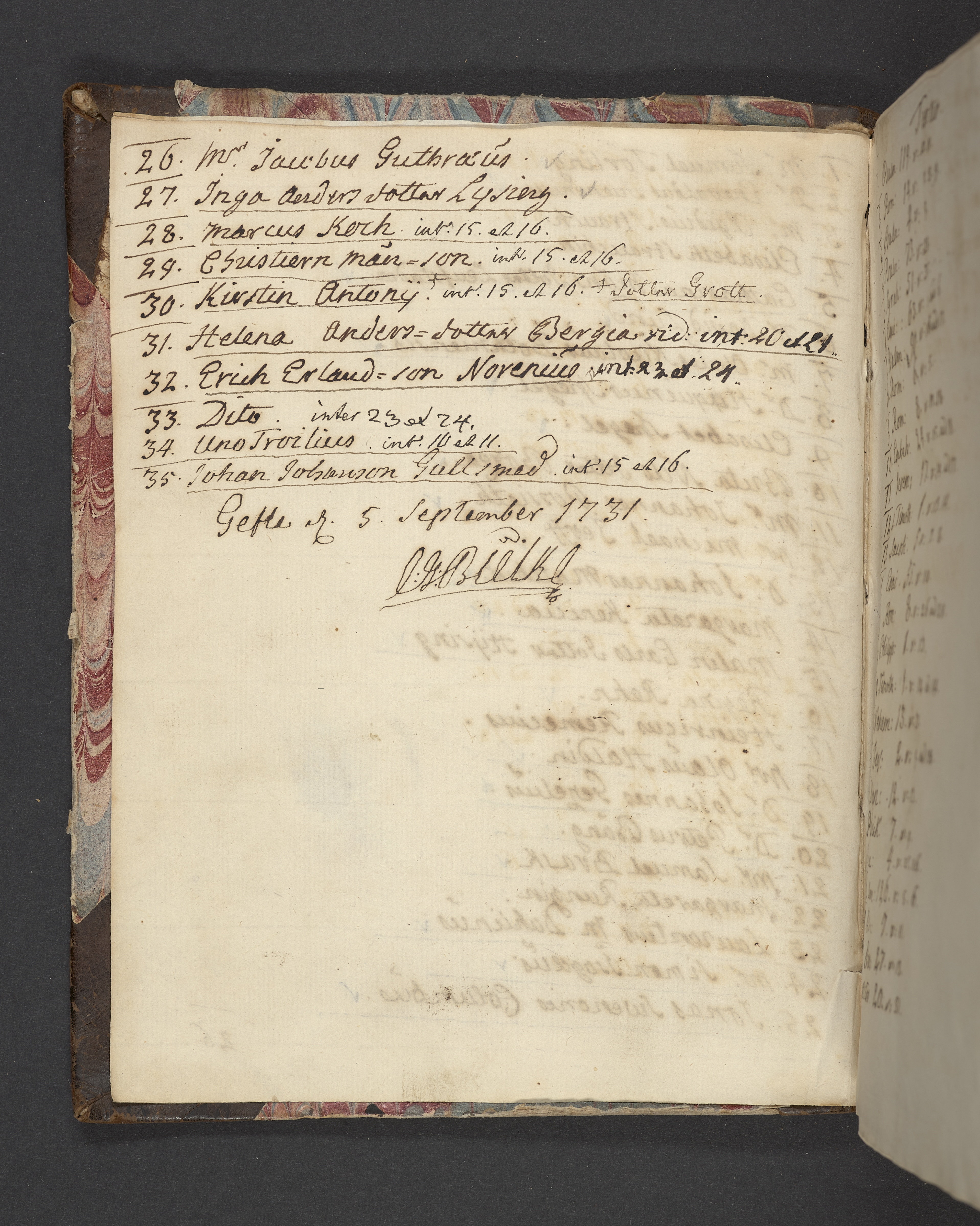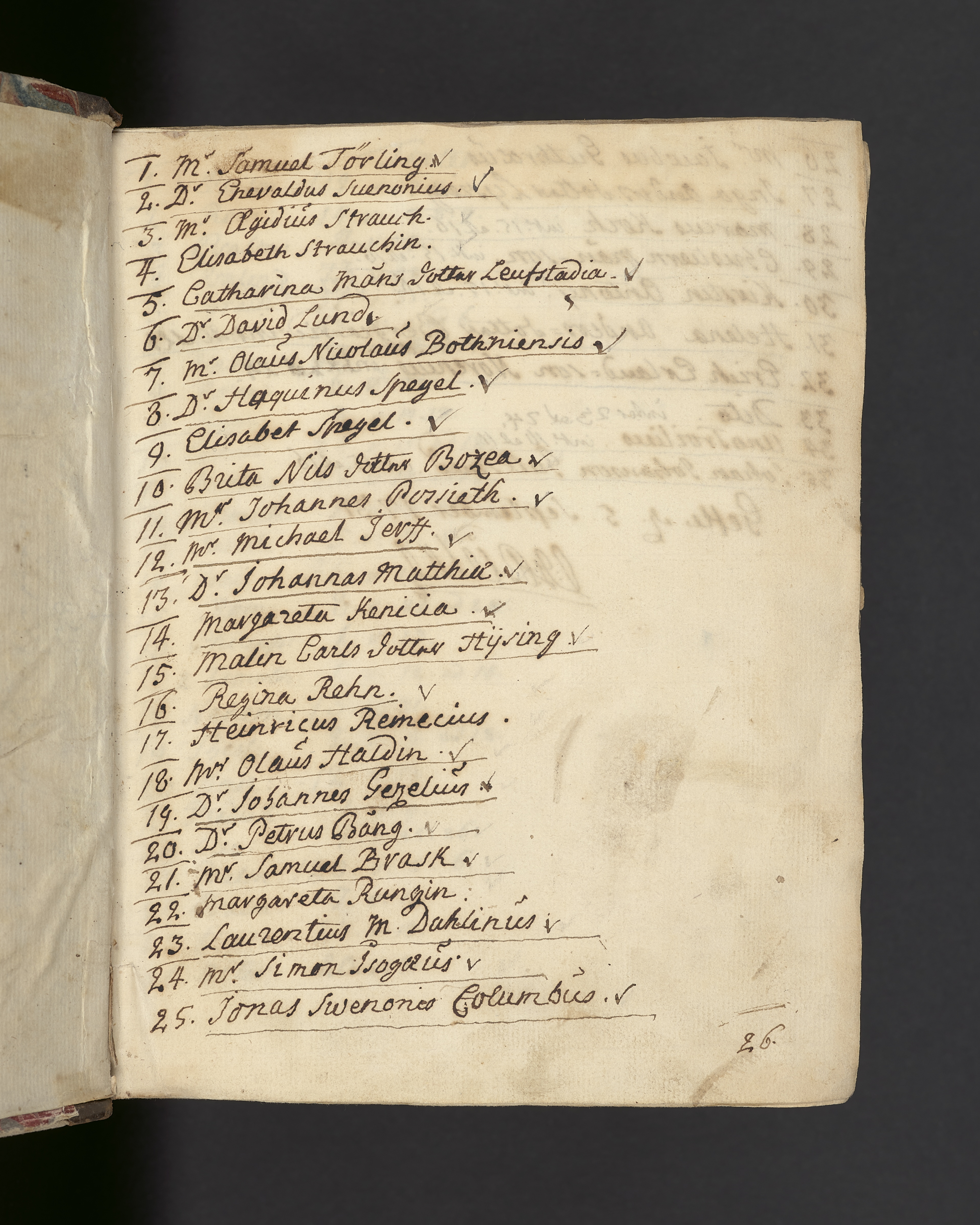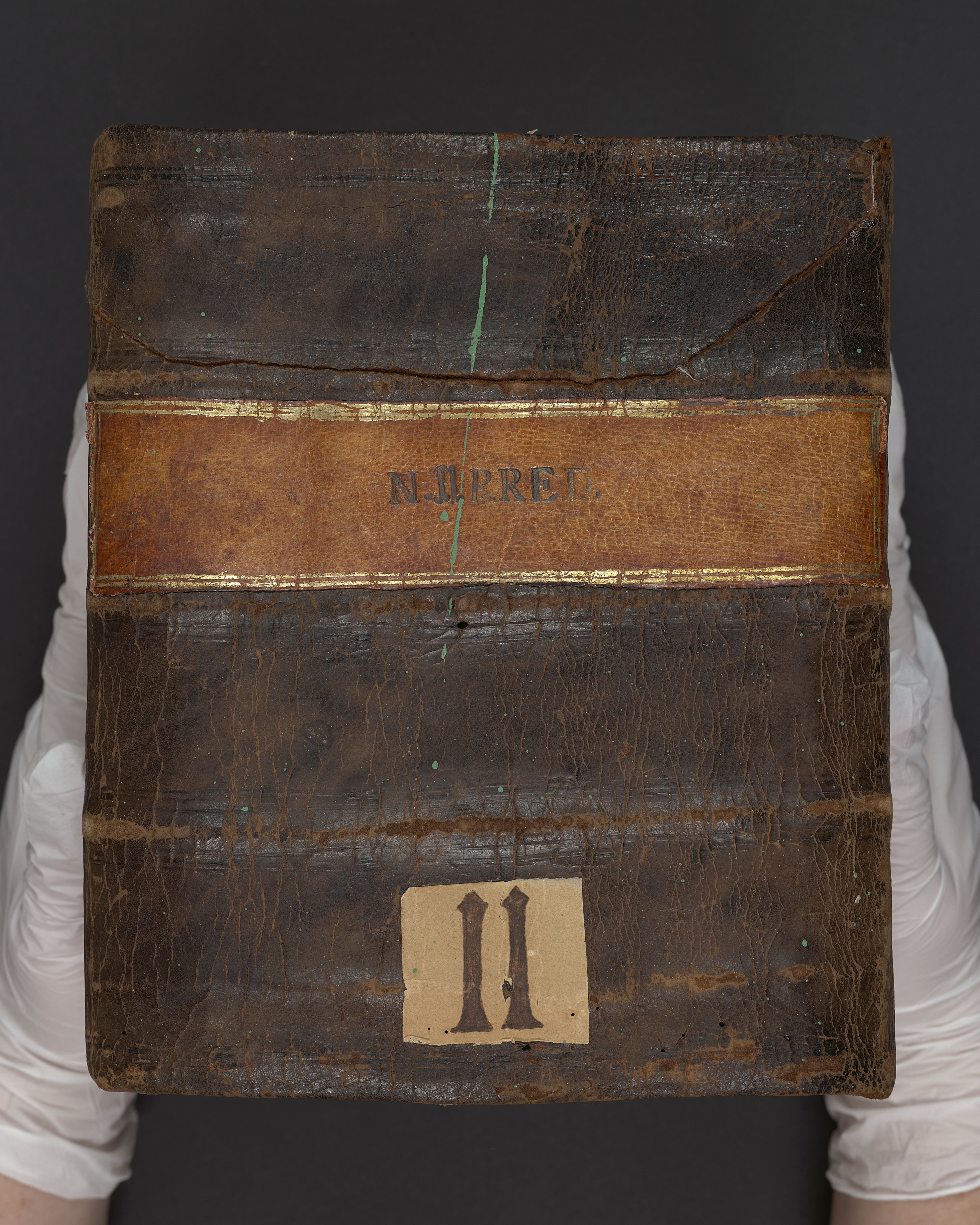 Band m. pärmar av marmorerat papper, rygg och hörn av fårskinn. Pärmfyllnad: papp. Inlagan består av enskilda skrifter som tillsammans häftats på fyra bind, fast rygg. Variationer i papperskvalitet och storlek. 45 skrifter samlade i en volym. Handskriven innehållsförteckning som anger 35 personer. Kvartovolym nr. 11 enligt Bielkes register.