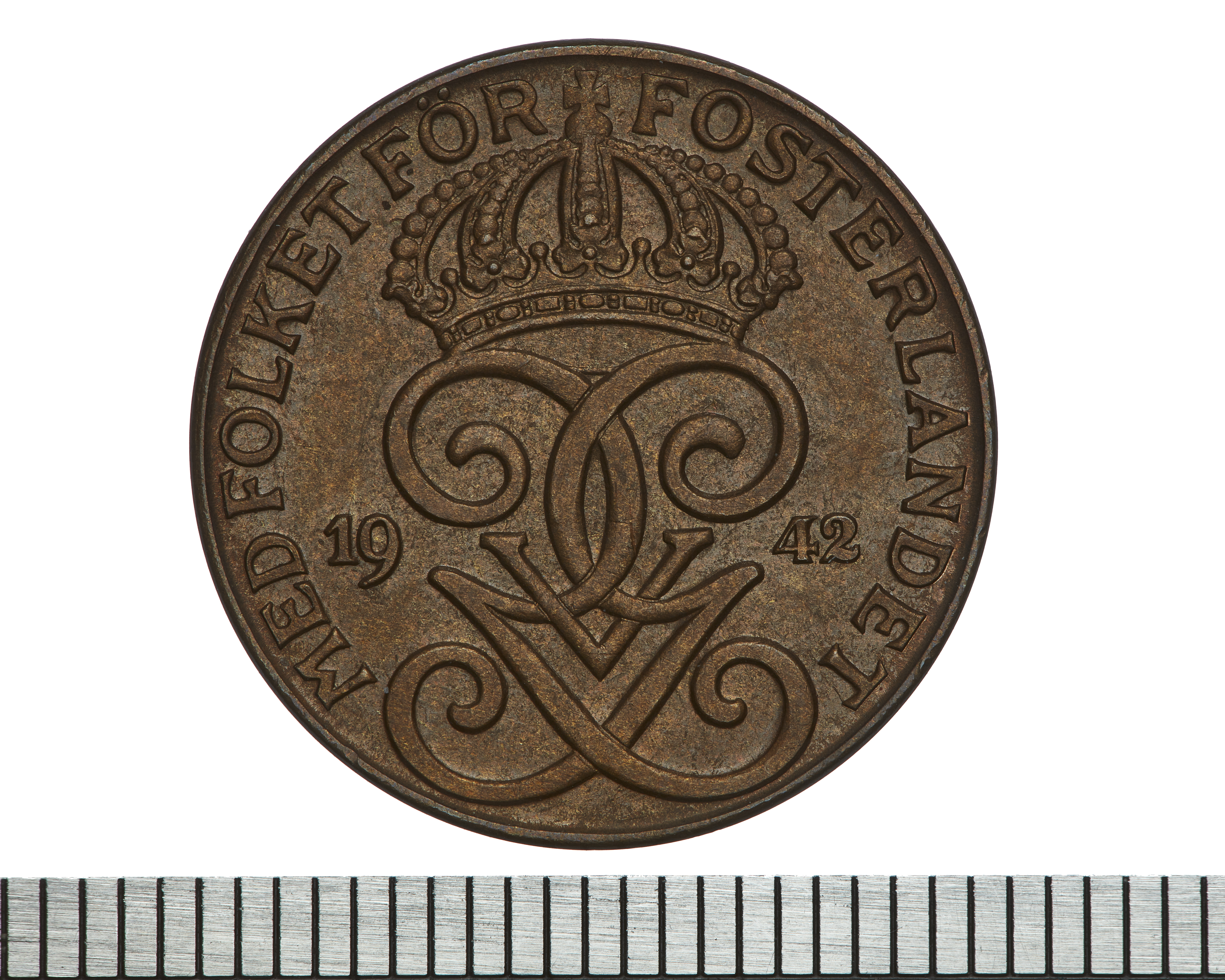 Upphov: Gustaf V av Sverige. Media: Bonnevier, Helena. Ekonomiska museet - Kungliga myntkabinettet/SHM, (CC BY 4.0) Du får bearbeta och dela verket för alla ändamål, även kommersiella, så länge du anger upphovsperson och licensgivare.