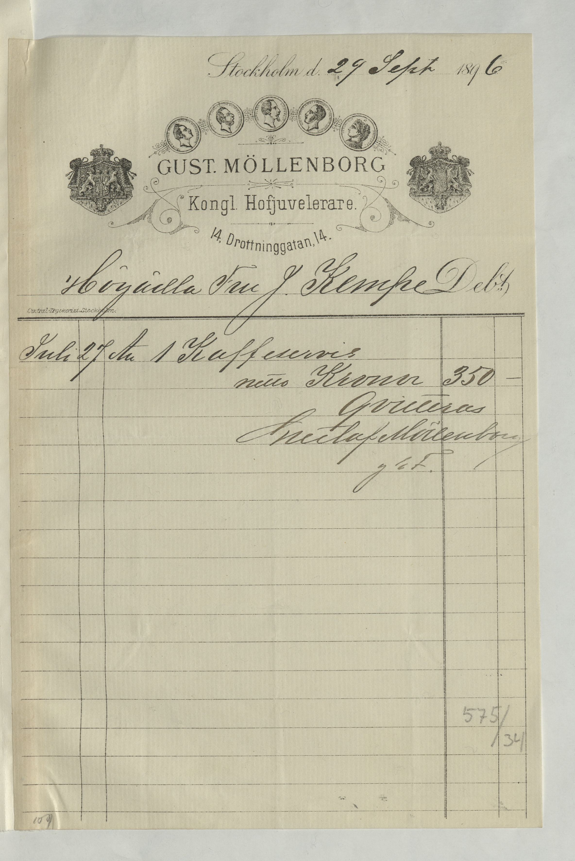 Kvitto från Gustaf Möllenborg, Juvelerare, 1896