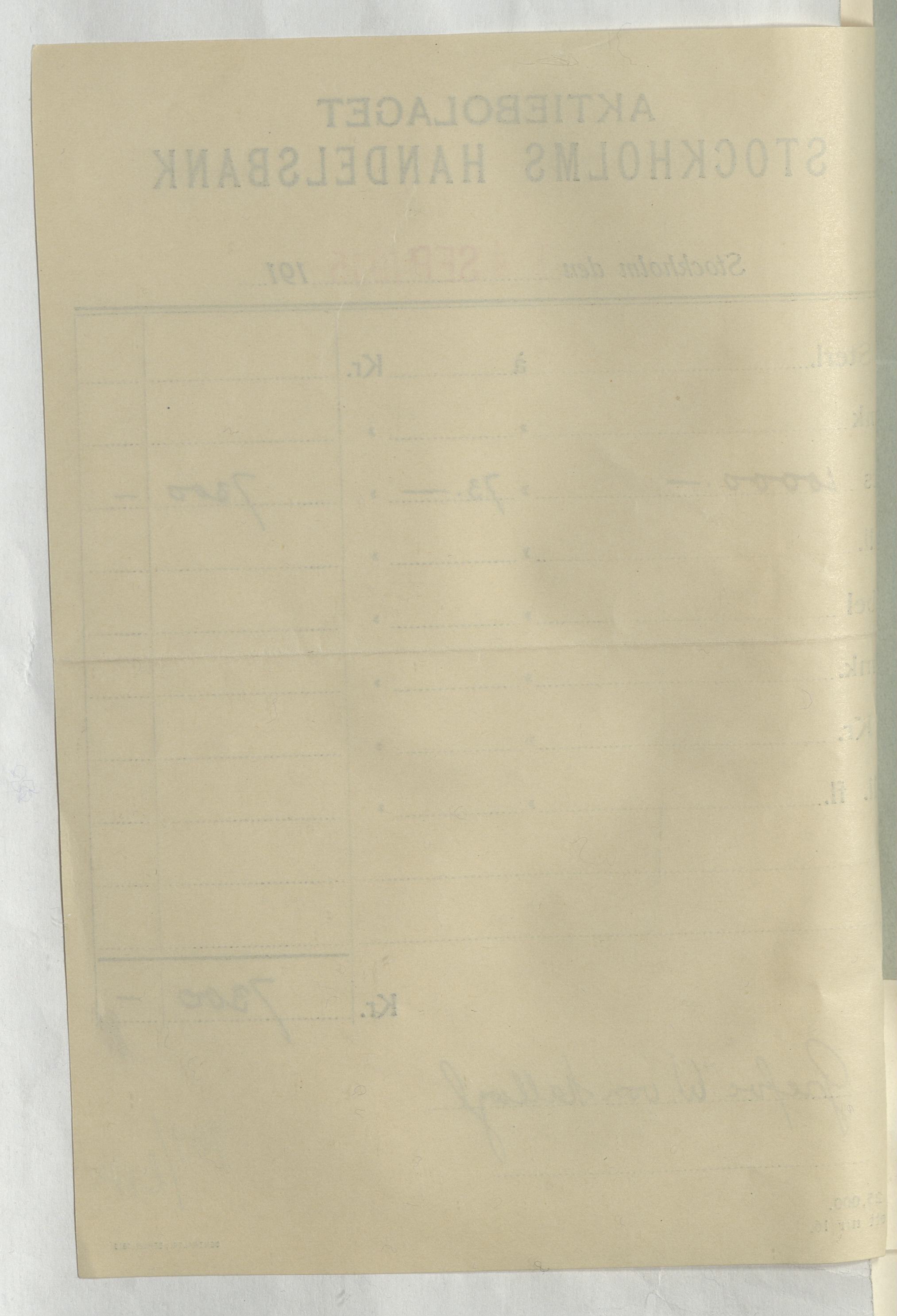 Verifikation från Aktiebolaget Stockholms Handelsbank