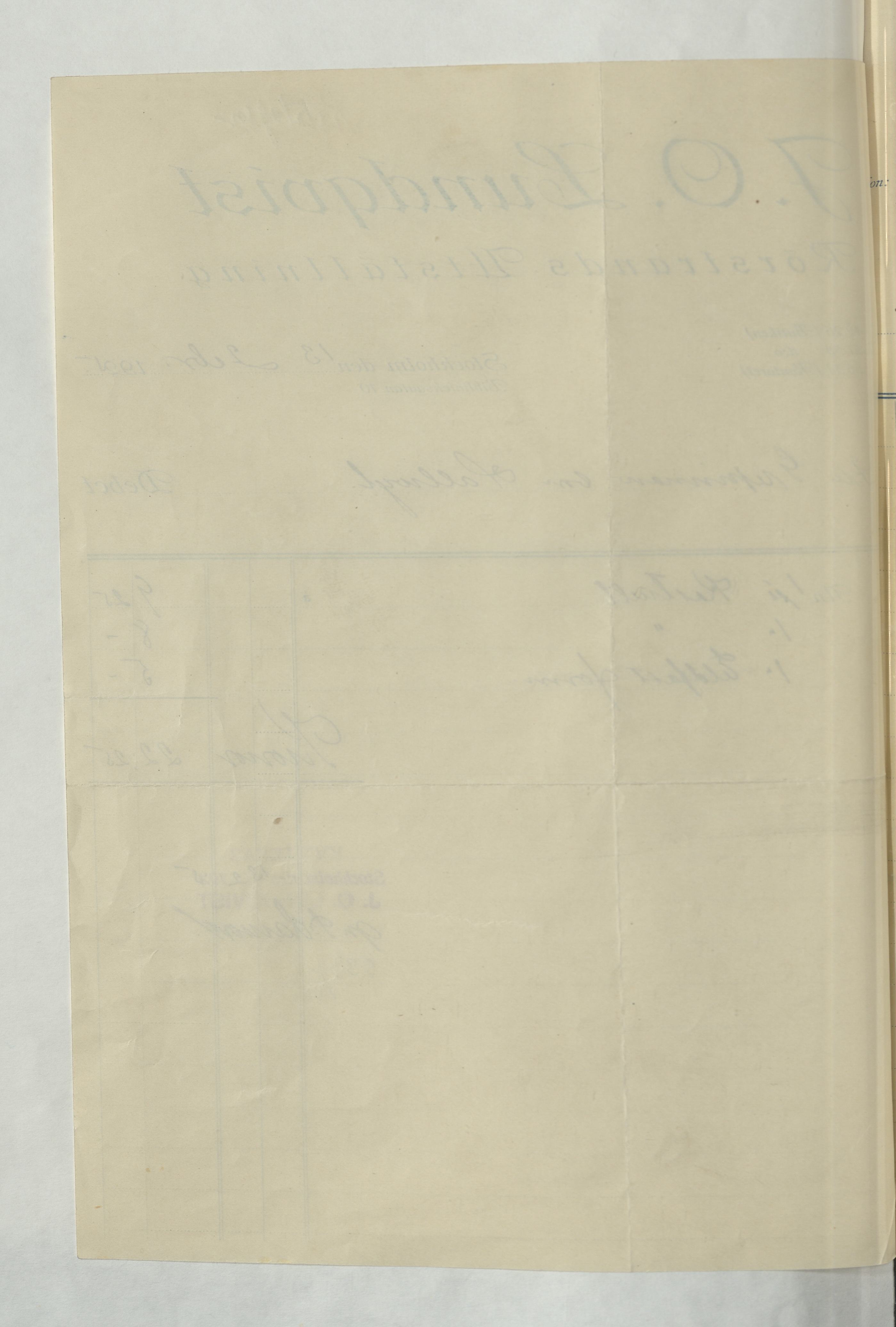 Kvitto från J. O. Lundqvist, Rörstrands Utställning, 1925