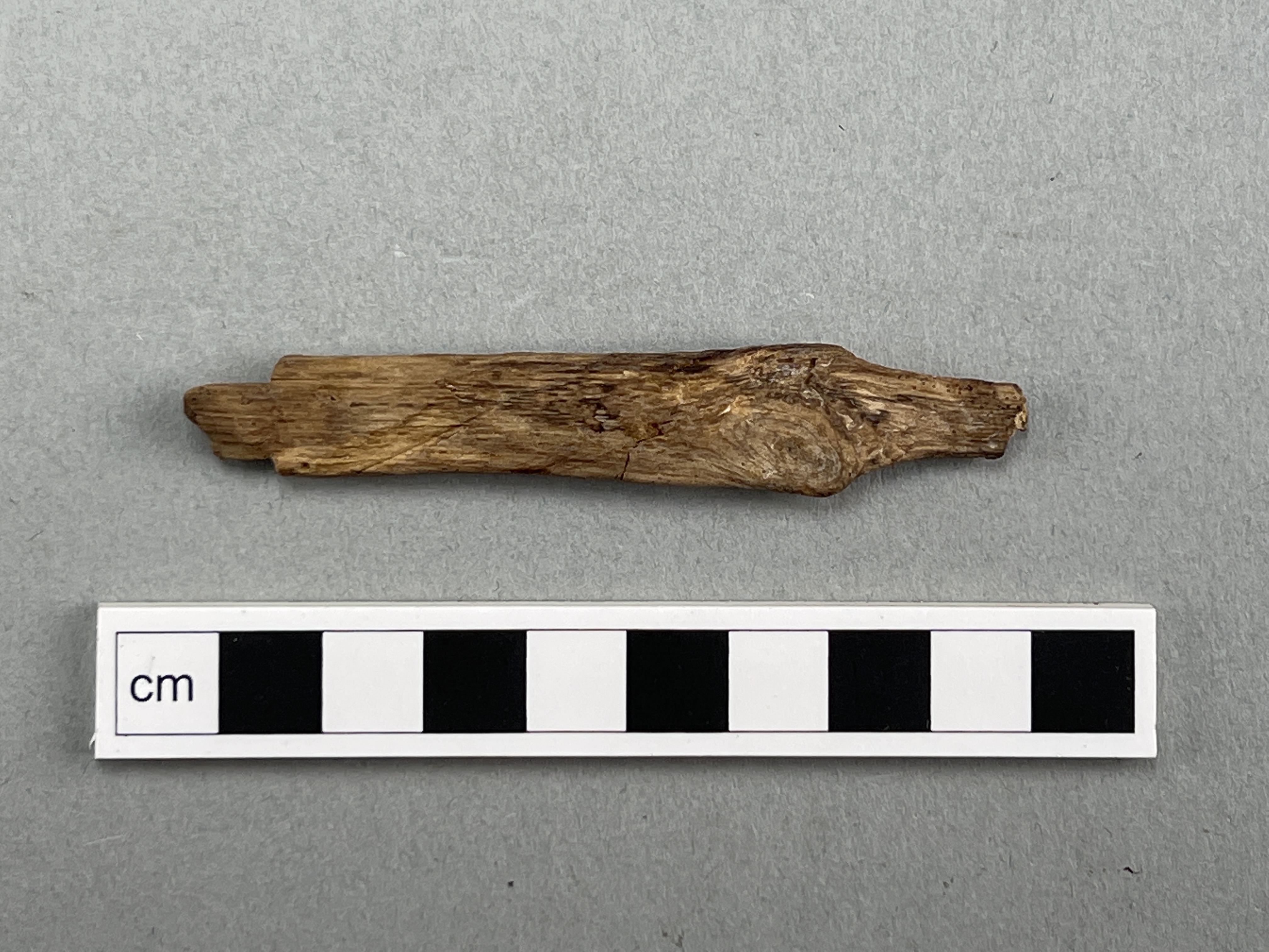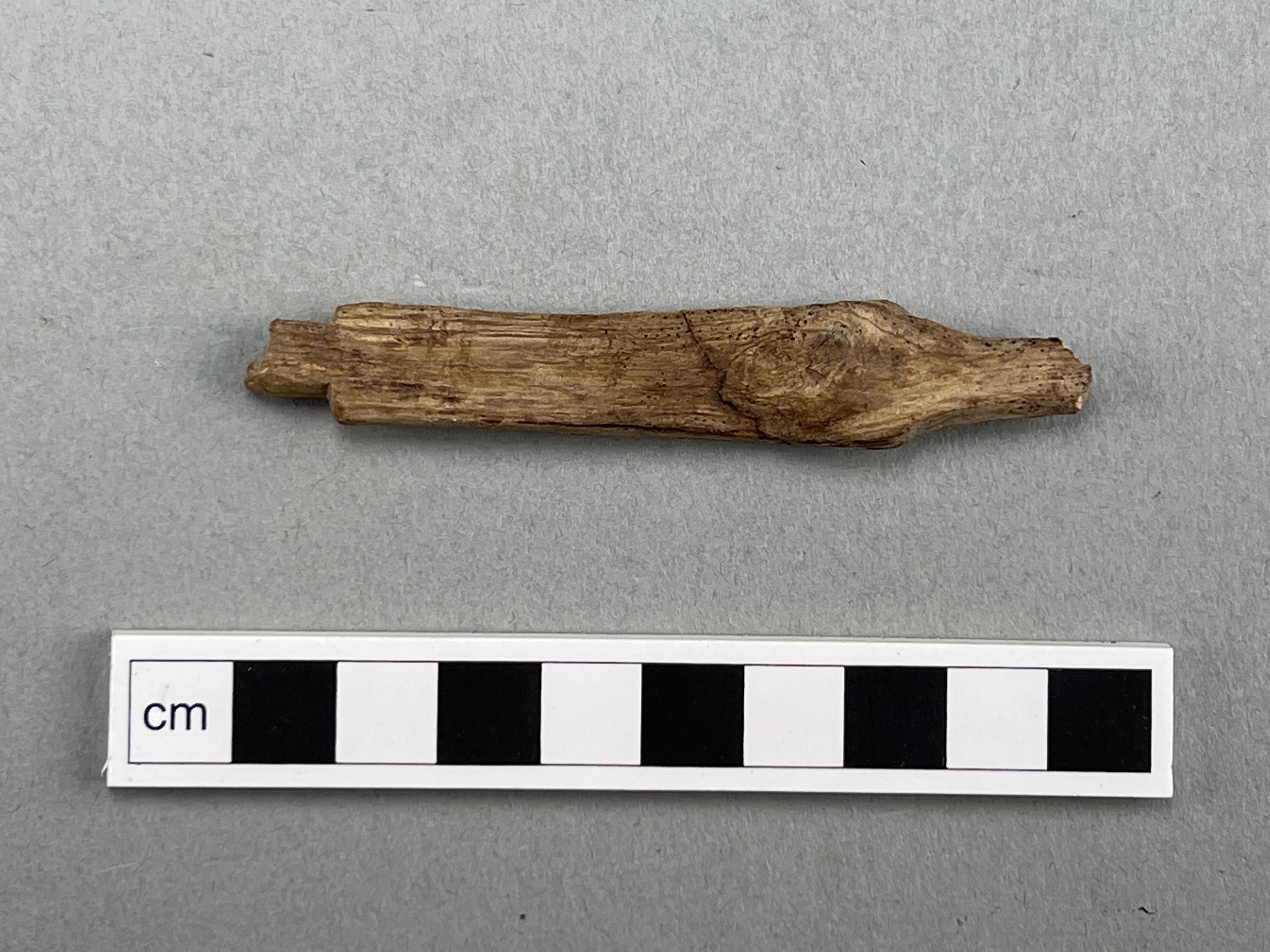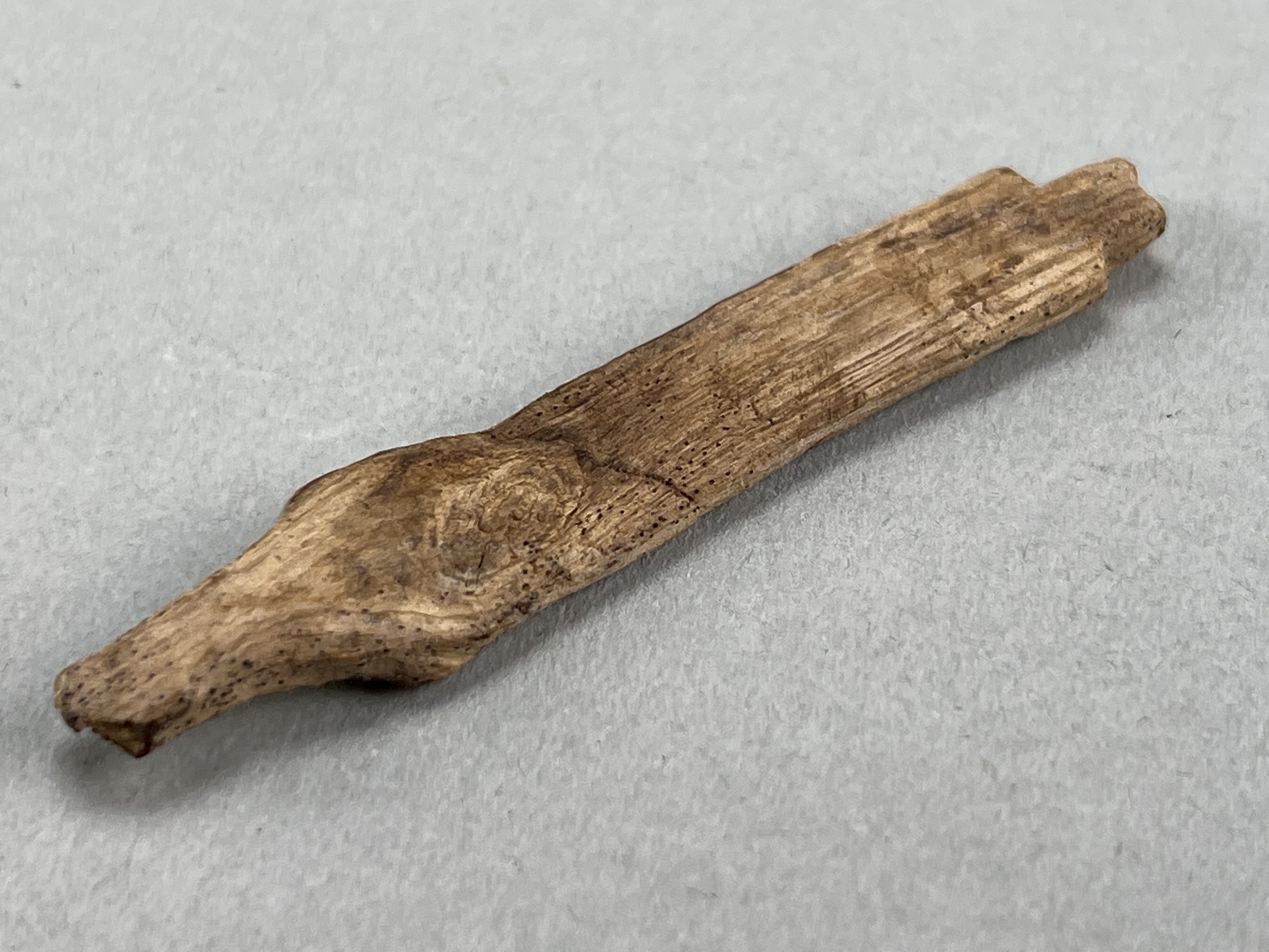 Huvud till nål med flera utsparade kanter och avfasningar. Ev. hår- eller klädnål.