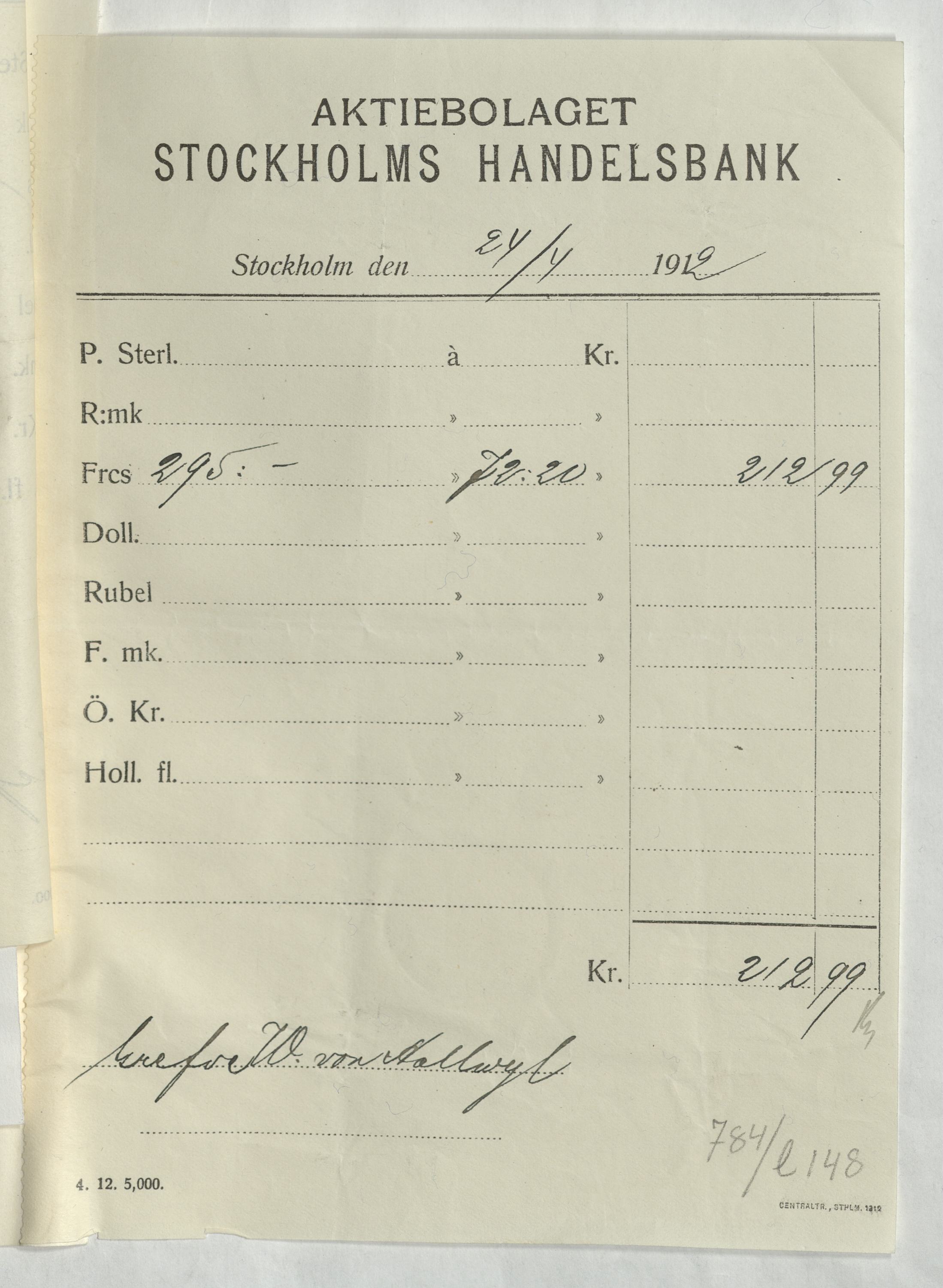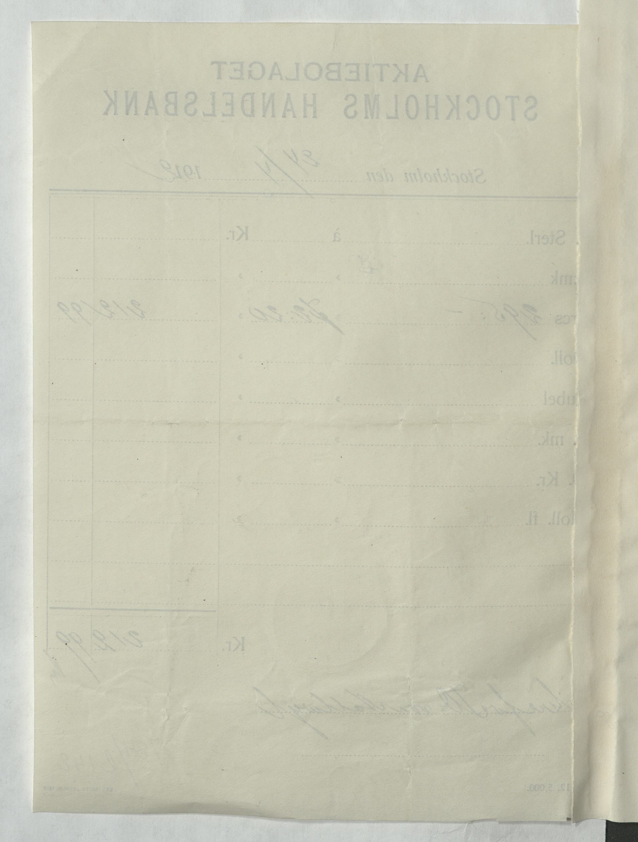 Verifikation från Aktiebolaget Stockholms Handelsbank