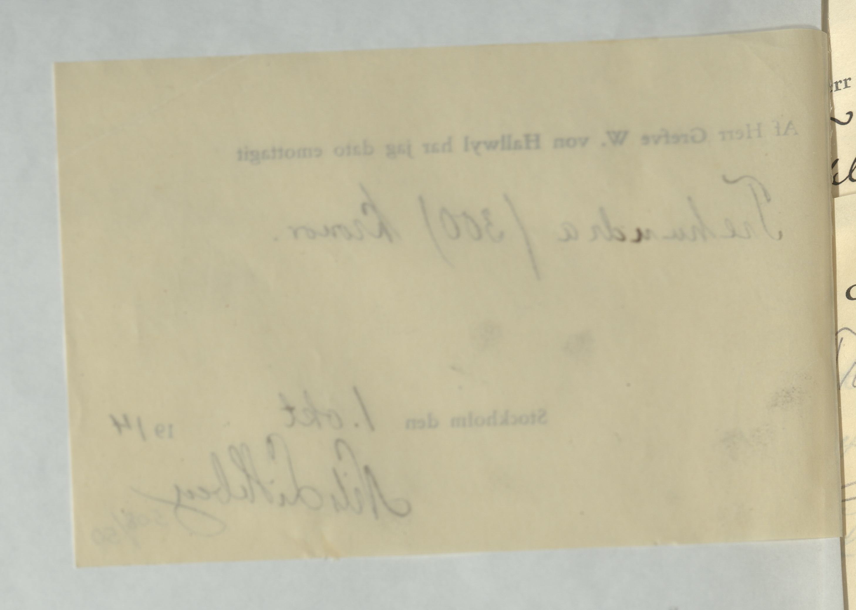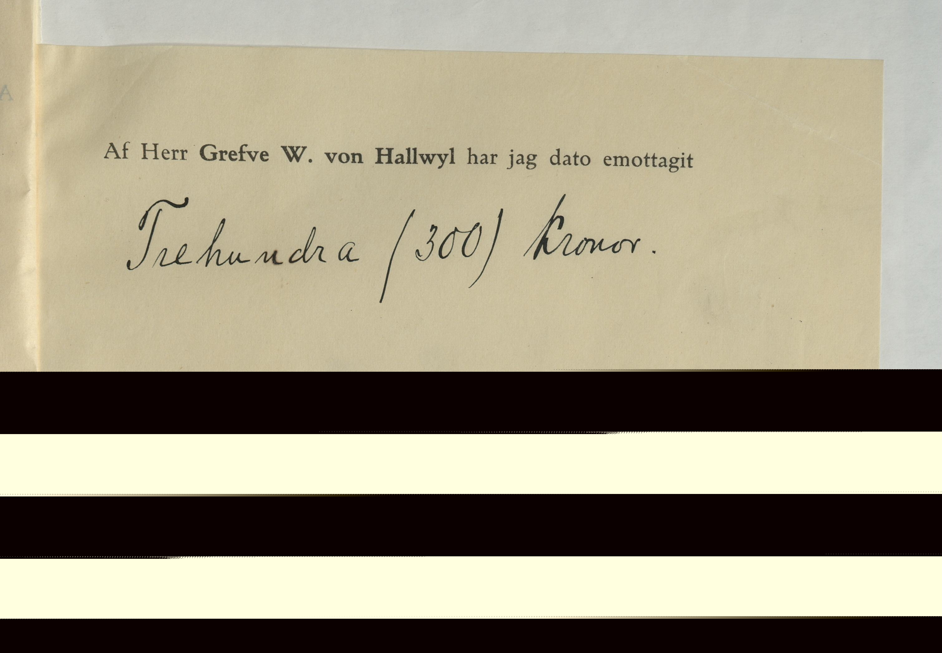 Emottagande av arvode från greven Walther von Hallwyl till Nils Lithberg, 1 oktober 1914.