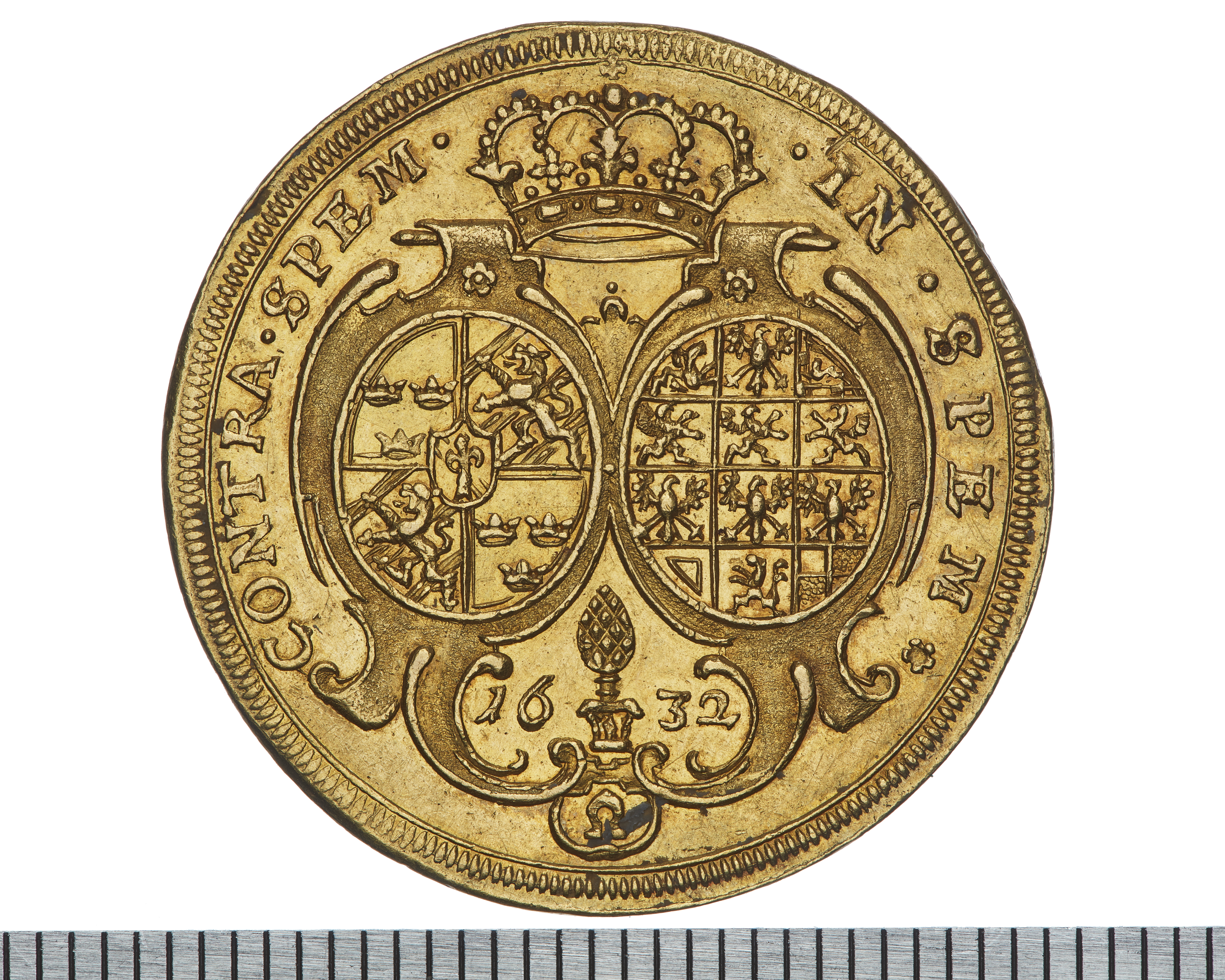 Upphov: Gustav II Adolf av Sverige. Media: Bonnevier, Helena. Ekonomiska museet - Kungliga myntkabinettet/SHM, (CC BY 4.0) Du får bearbeta och dela verket för alla ändamål, även kommersiella, så länge du anger upphovsperson och licensgivare.