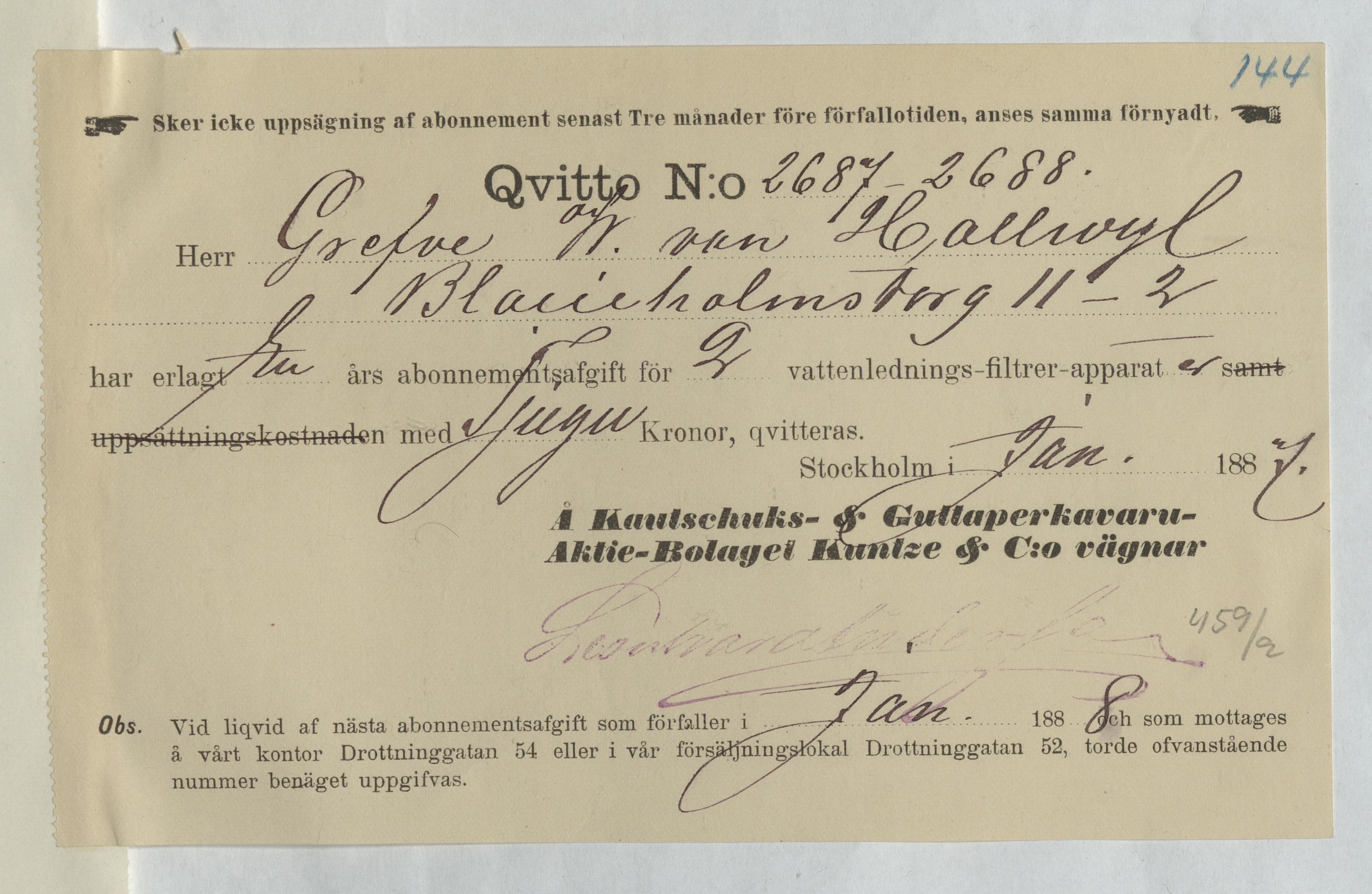 Kvitto från Kautschuks- & Guttaperkavaru-Aktiebolaget Kuntze & Co.