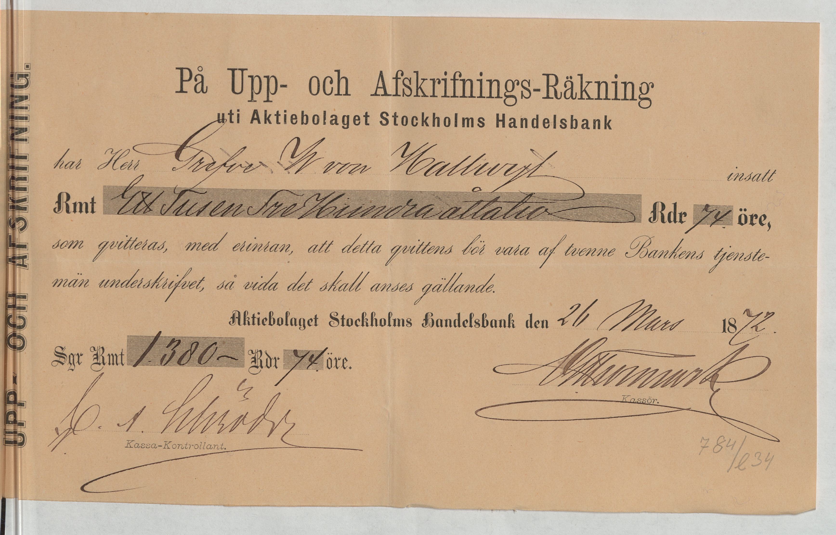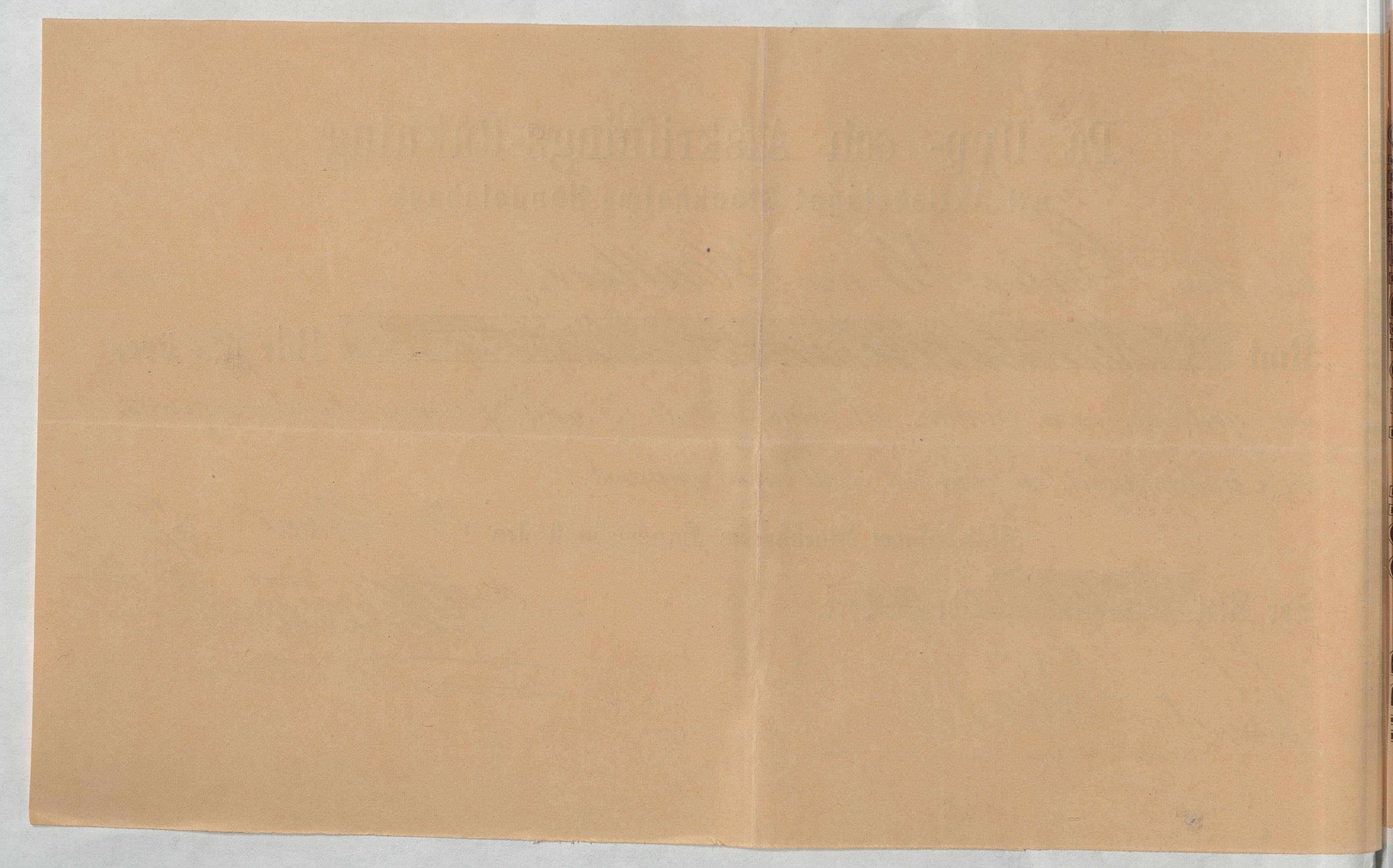 Kvitto från Aktiebolaget Stockholms Handelsbank rörande Upp- och Afskrifnings-Räkning