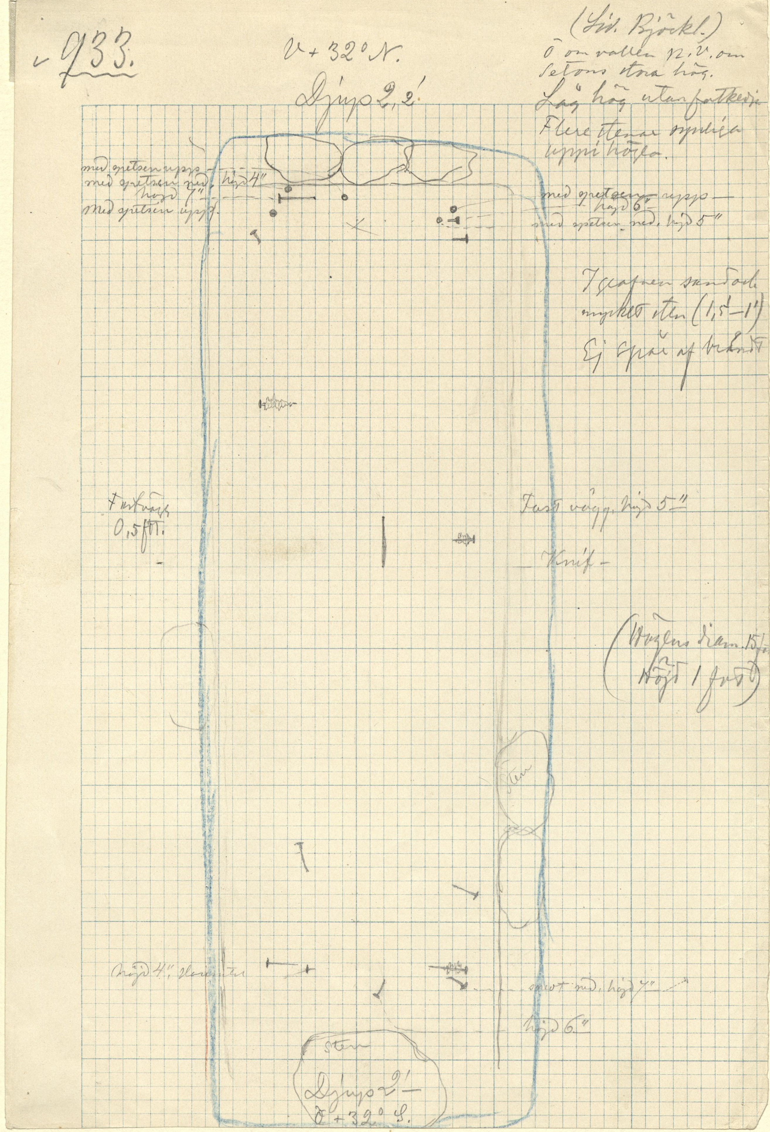 Yttre beskrivning: Mått saknas, Inre beskrivning: Grop, 2,2 × 0,8 meter, Djup 0,7 meter, Yttre gravskick: Hög, Inre gravskick: Kistgrav, Björkögravar