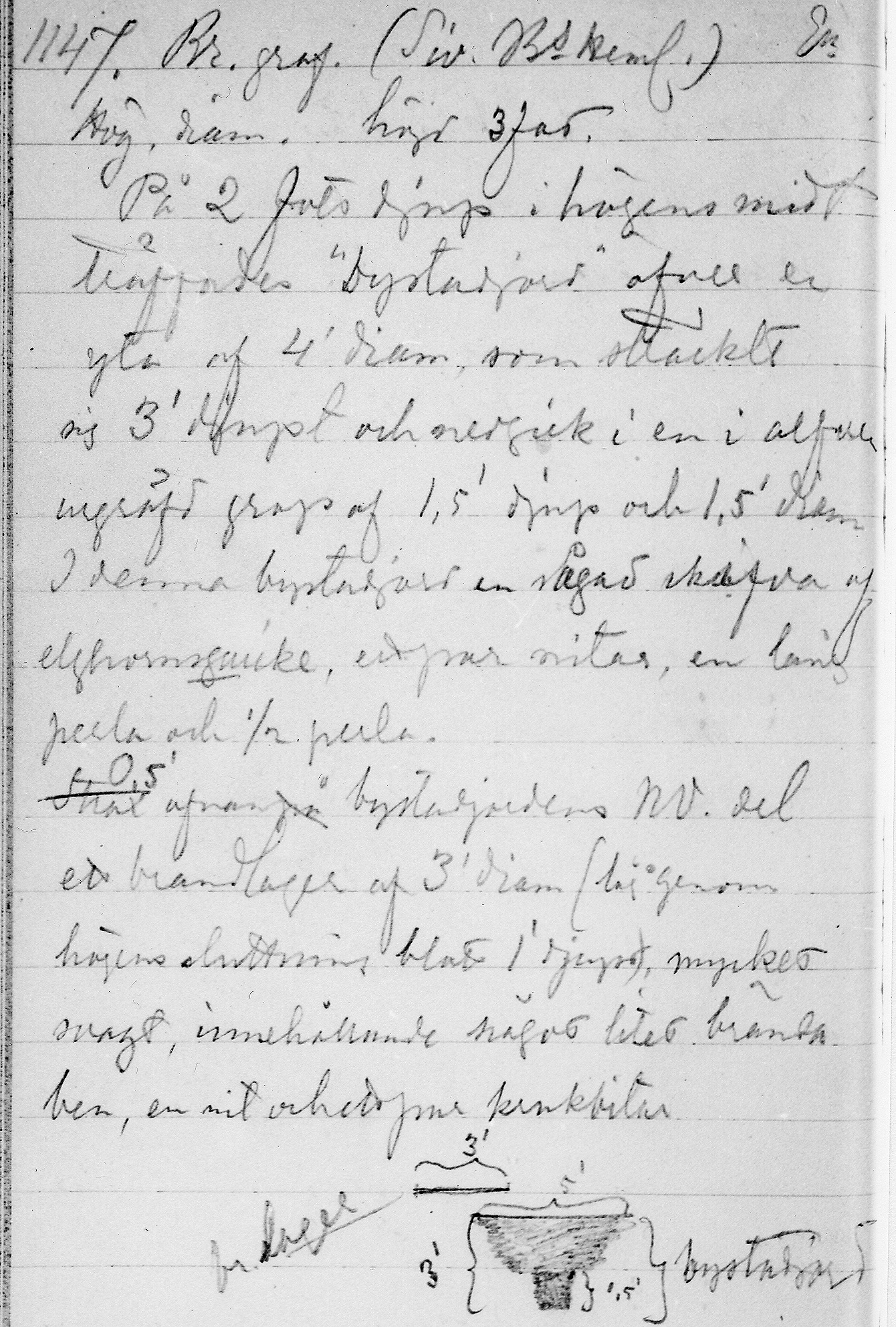 Yttre beskrivning: Höjd 0,9 meter, Inre beskrivning: Brandlager, Diameter 0,9 meter, Yttre gravskick: Hög, Inre gravskick: Brandgrav, Björkögravar