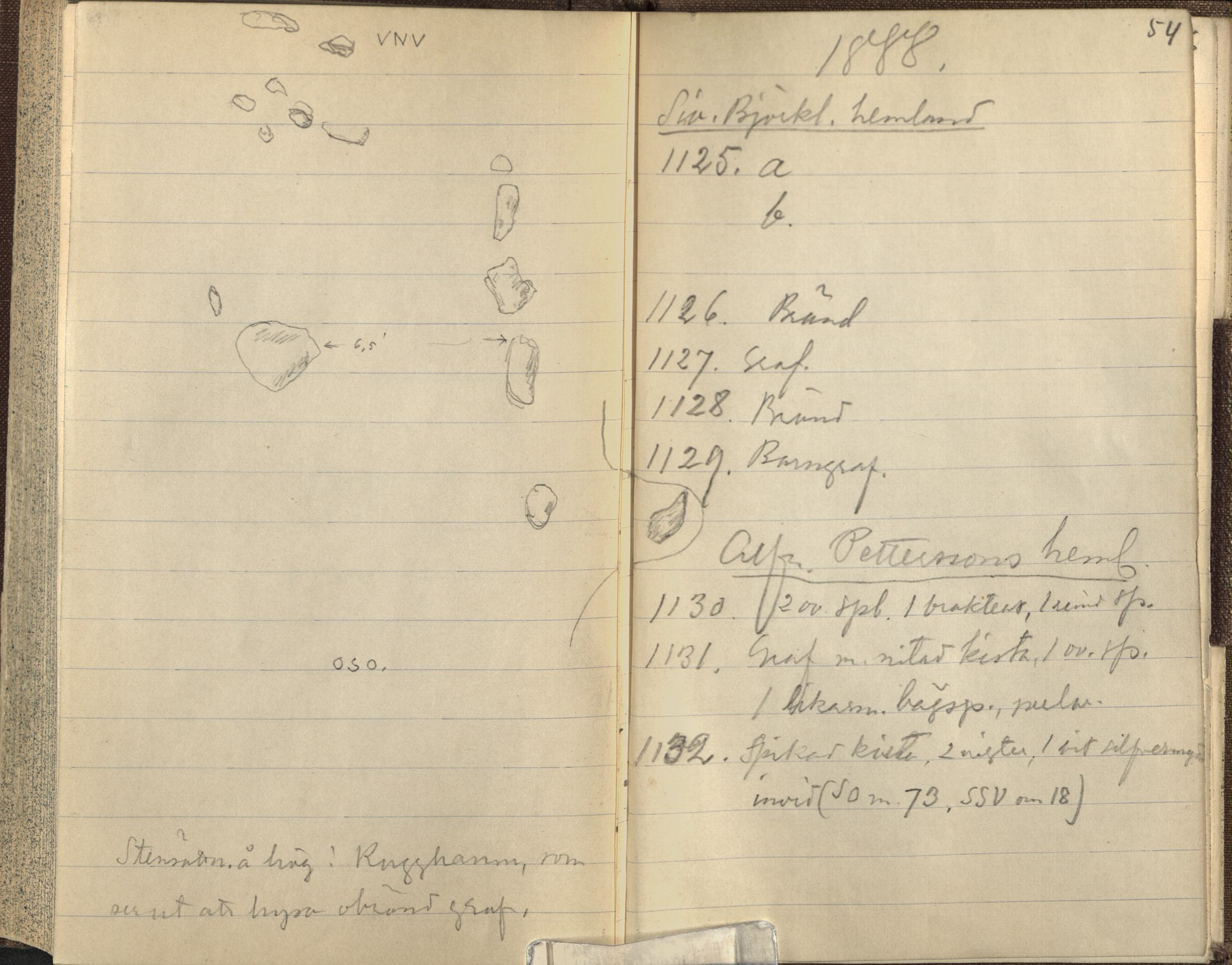 Inre beskrivning: Grop, 2,1 × 1,1 meter, Djup 1,5 meter, Yttre gravskick: Obekant yttre gravskick, Inre gravskick: Kistgrav, Björkögravar