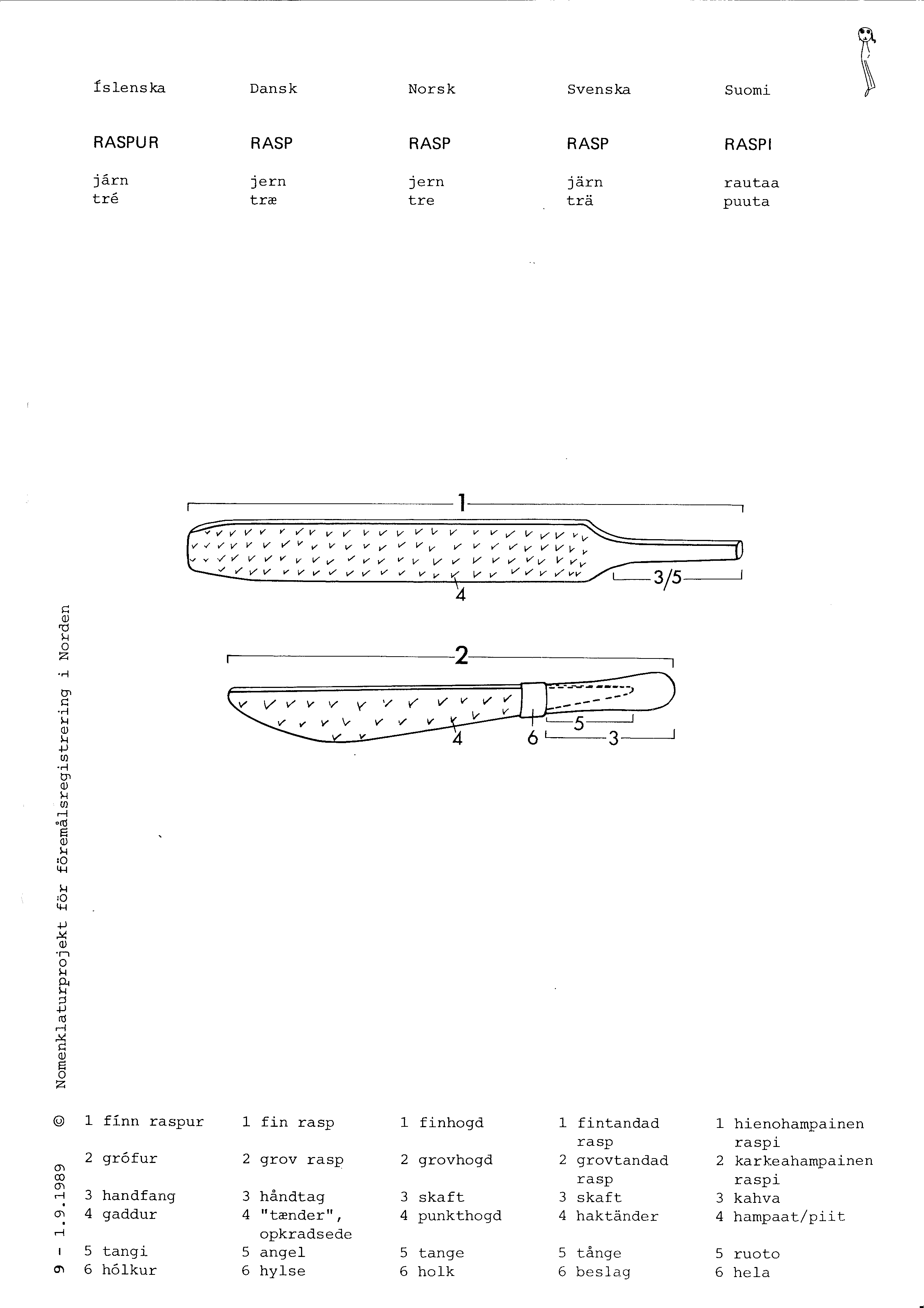 Rasp, redskap med grovt huggna grader, för kraftigare bearbetning av träytor. För att bättre komma åt var raspen ofta vinklad. Rasp förekommer t ex i Mästermyr-fyndet.