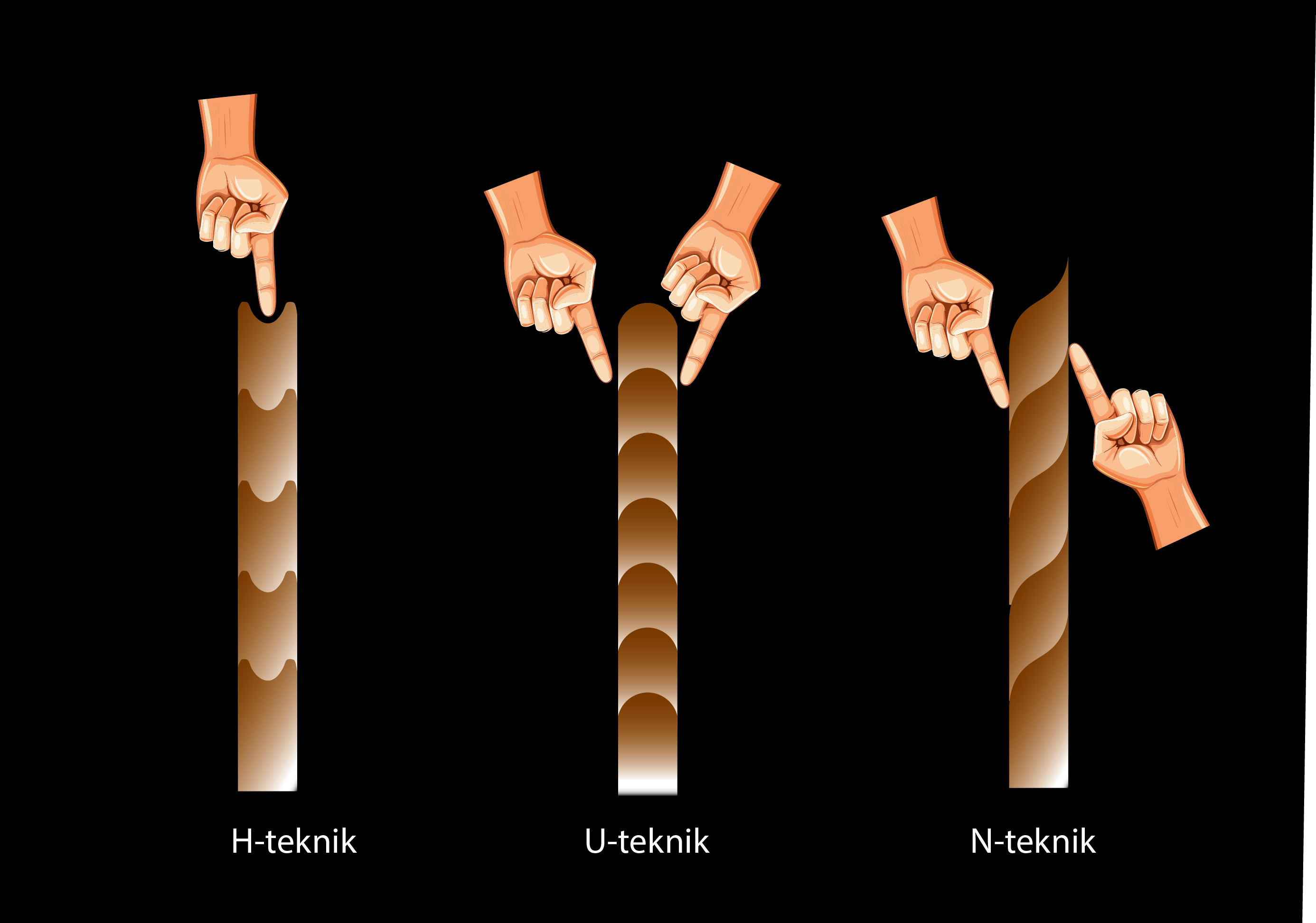 Remsorna fogas samman genom att man kan ha tappar i remsorna, men vanligast är att man fogar samman remsorna genom att dra in- och utsidorna uppåt eller nedåt i U- eller N-teknik. Ofta har kärlbotten formats genom tumning (t ex rundbottnade kärl) eller som en platt skiva (planbottnade kärl). Oftast förknippad med småskalig produktion av lerkärl under förhistorisk tid.