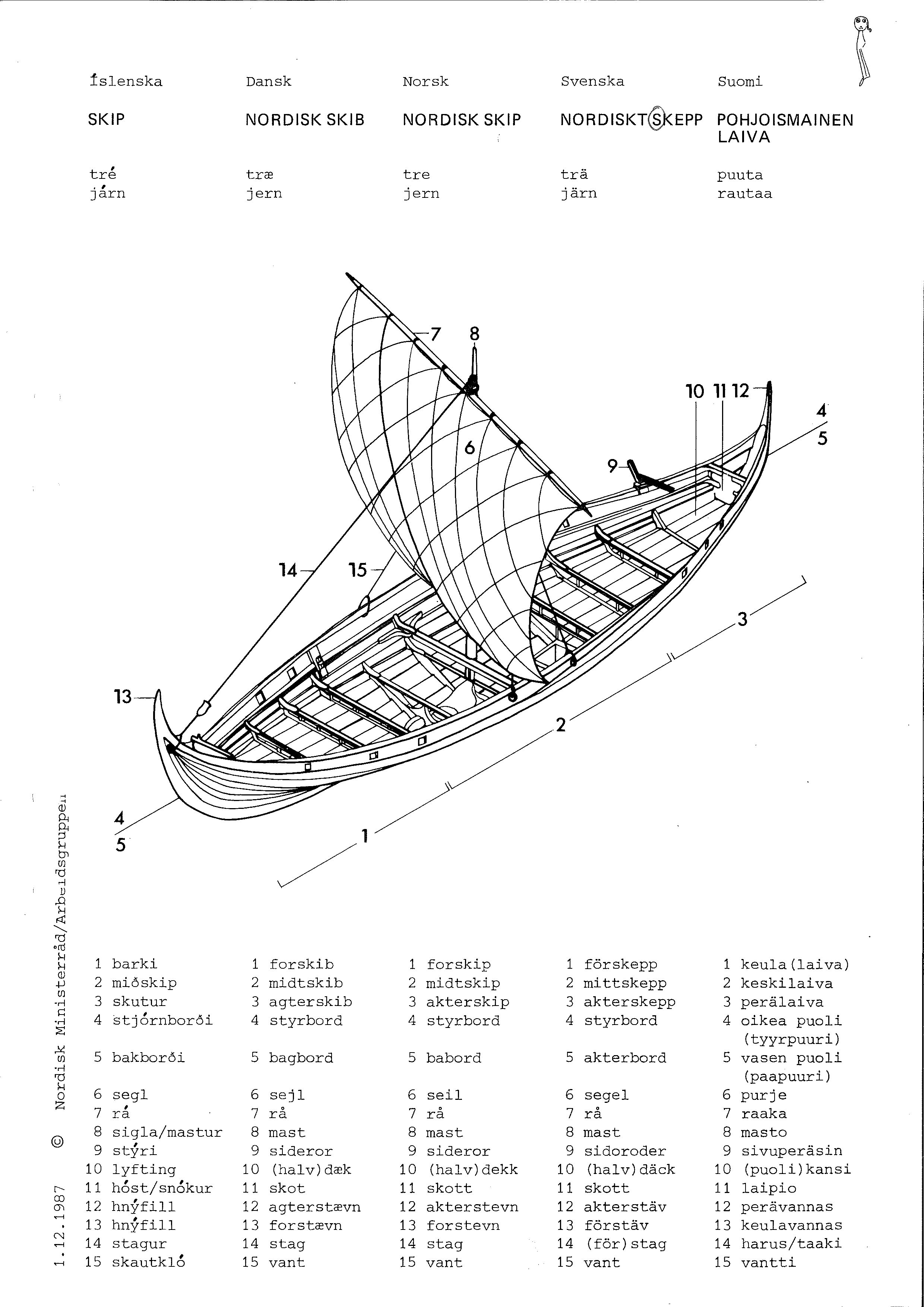 VIK: Skepp. Termen vikingaskepp är inte entydig. Typerna var flera. I stort kan man dock skilja mellan två typer: handelsskeppen - de bredare, kortare, lastdrygare och högre båtarna av typ Skuldelev 1 och 3 samt Aske-kärr och smalare, längre, lägre båtarna av typ Skuldelev 2 och 5, Oseberg och Gokstad. Såväl handelsskeppen som långskeppen var i sin tur indelade i flera typer. Och givetvis fanns dessutom även under vikingatiden hela floran av mindre båtar av olika utseende och för olika ändamål, t ex små båtar för rodd, stockbåtar, färjor etc Det visar ju också våra nordiska fynd av mindre vikingatida båtar. Men av alla dessa typer är det vikingatidens seglande båt som tilldragit sig det största intresset och sällan har väl en båttyp så symboliserat en tidsålder. Vikingatidens seglande båt var en spetsgattad, klinkbyggd båt med vertikal köl och sidoroder (i allmänhet placerat på styrbordssidan), mast, rigg och råsegel. De hittills påträffade fynden i Norden har längder på mellan 16-28 m men i sagorna omnämnes båtar på upp till 60-70 meters längd. I de isländska sagorna berättas också om de olika båtarnas benämningar, snäcka knarr etc. Byggnadsmetoden för den vikingatida båten var s k "skalbygge", d v s utan mallar lades först kölen ut, oftast i ett stycke. Stävarna lastades till kölen och avslutades ibland med en stävprydnad. Därefter lades den överlappande bordläggningen och slutligen sattes spanten in. Dessa var ofta självvuxna ämnen. Borden nitades oftast samman med järnnitar. På mindre båtar var borden ibland sydda samman med vidjor eller trädymlade. I några av fynden är spanten surrade till borden i utsparade klampar och i några fall nitade samman med trädymlingar. Som tätningsmedel användes tjärdränkta strängar av hoptvinnat nöthår, mossa eller tygremsor. Valet av virke var viktigt. I största möjliga utsträckning an vändes självvuxet virke till spant, stävar, knän etc. Huvudmaterialet i båtarna var ek, någon gång fur och i något enstaka fall ask. Masten var placerad i ett ekblock, som låg över spanten i kölsvinet, och stöttades av mastfisken, också den ett ekblock, placerat över balkarna i däckshöjd. Jfr Segel, Ormen Långe, Tune-skeppet, Ladby-skeppet, Arby. MED: Skepp. I Sverige finns ca 25 fynd av medeltiden s. eller rester av s. De är alla enmastade och har framdrivits med stora råsegel. Fartygstyperna är dock många. Det medeltiden skeppsbyggeriet hade till en början vikingatiden traditioner. Först på 1400-talet kom fartyg med 2 - 3 master, stor-, fock- och mesanmast. Under 1400-talets senare del förekom det att stora skepp riggades med 4 master. Boliner och bogspröt tillkom under tidig medeltiden och riggen vevades för att underlätta uppäntringen till mastkastellet, stridsmärsen.