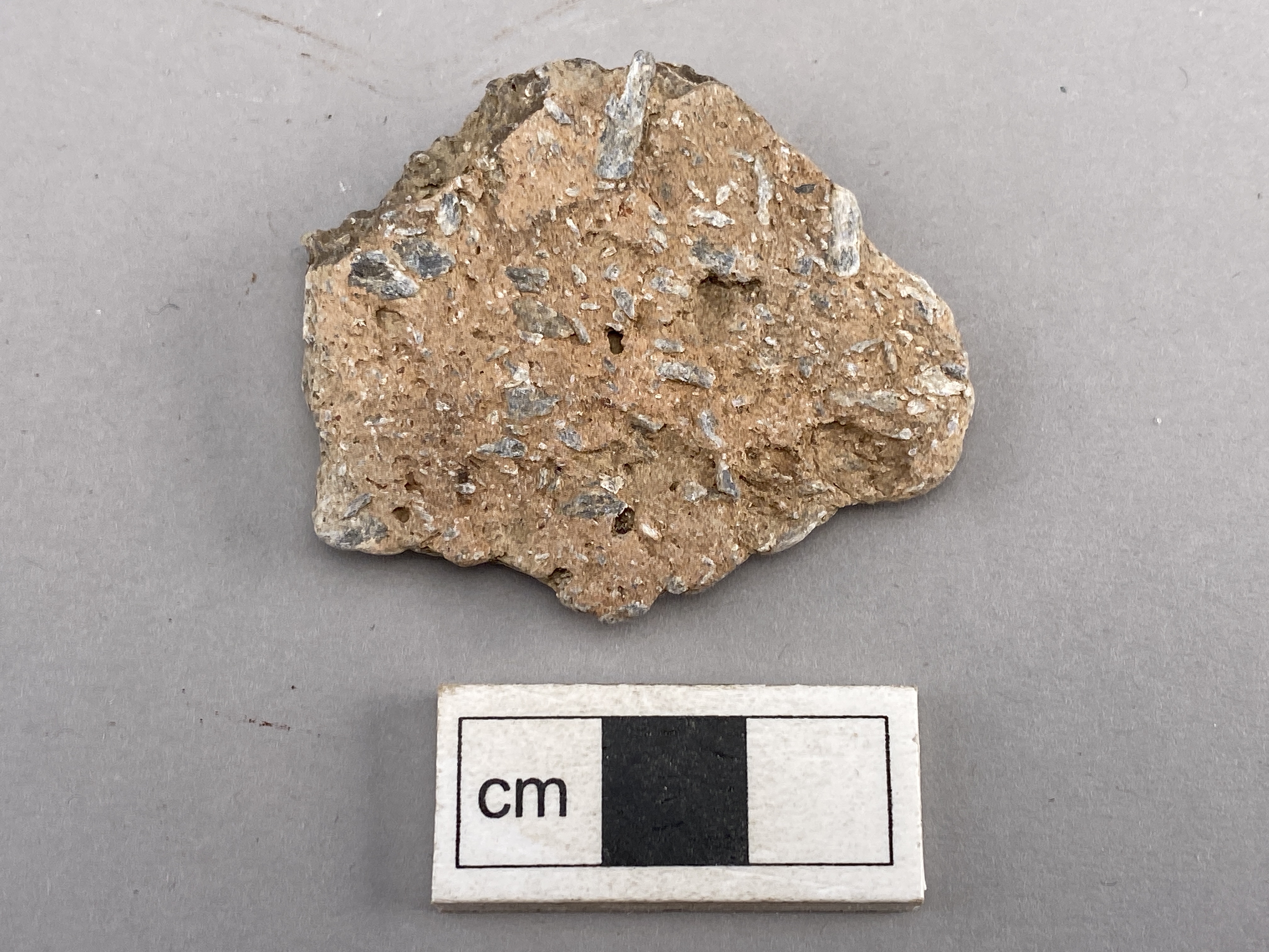 Magring av krossad täljsten. Ibland blandad med asbest eller andra bergarter. Magringskornen är ofta ljusgråa, avlånga och många är långa mellan 3-6 mm stora.